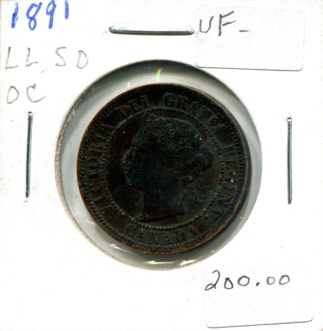 1891 (LL,SD,OC) Victoria Large One Cent Coin
