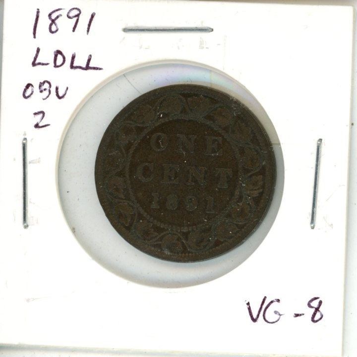 1891 Large Date, Large Leaves, Obverse 2 (double chin) Canadian Victorian Large Cent. VG-8.