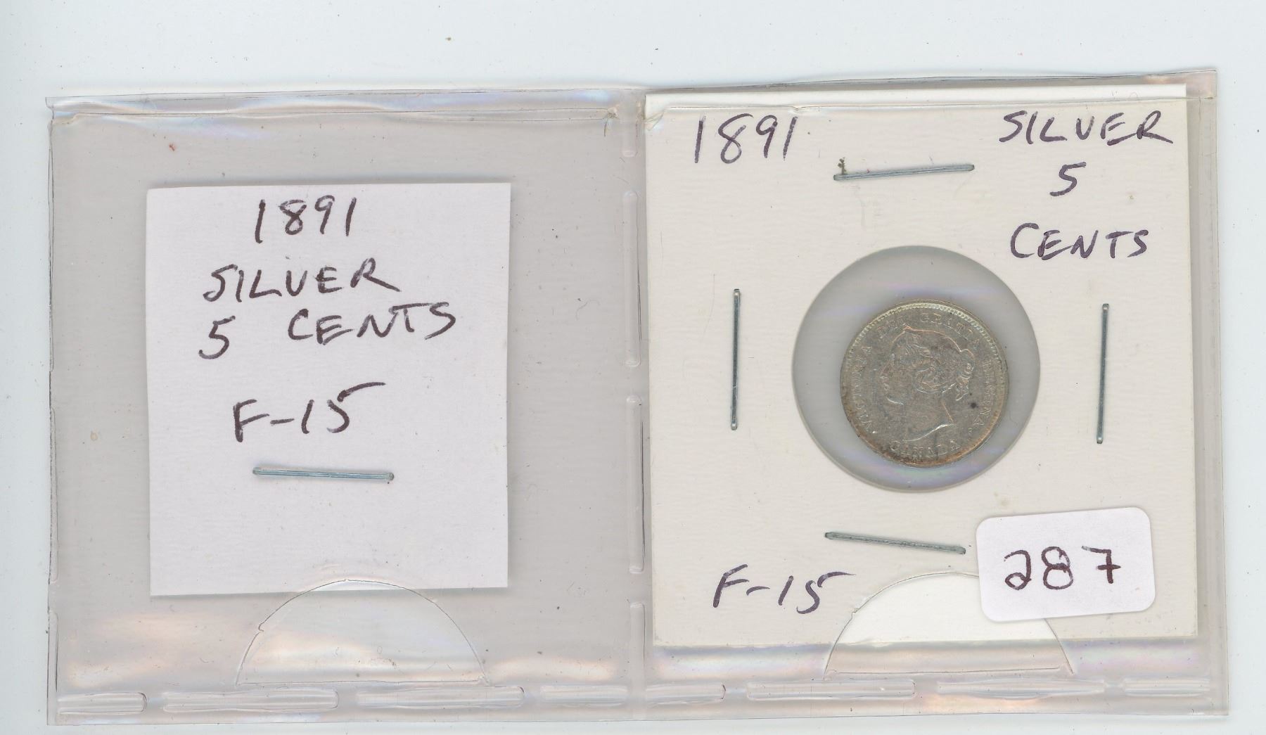 1891 VICTORIAN SILVER 5 CENTS. F-15.