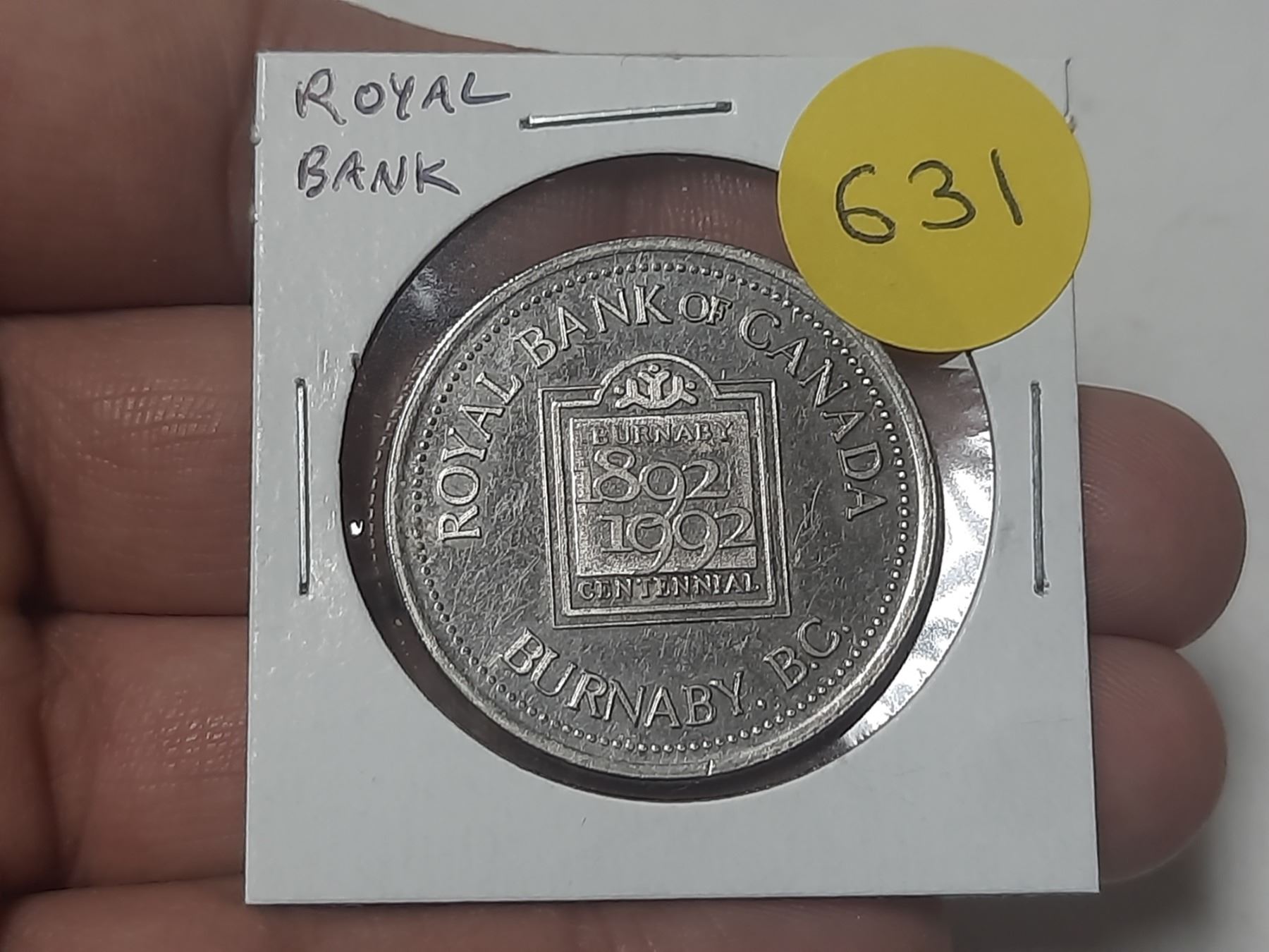 1892 – 1992 Royal Bank of Canada Trade Dollar celebrating the 100th Anniversary of Burnaby BC. Unc.