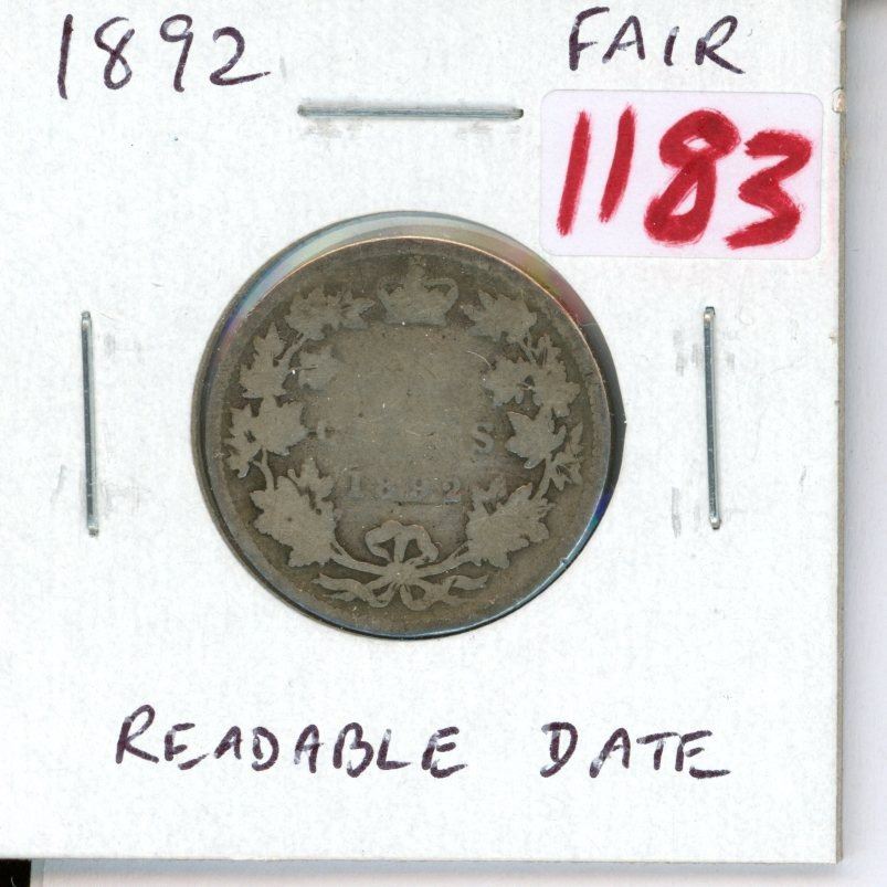 1892 Canadian Victorian Silver 25 Cents. Fair-2. Readable Date.