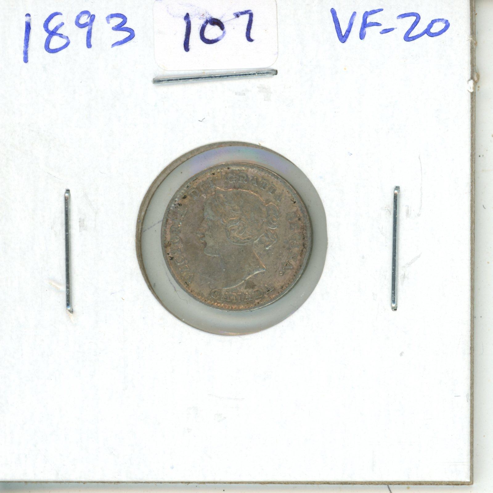 1893 Canadian Victorian Silver 5 Cents. VF-20.