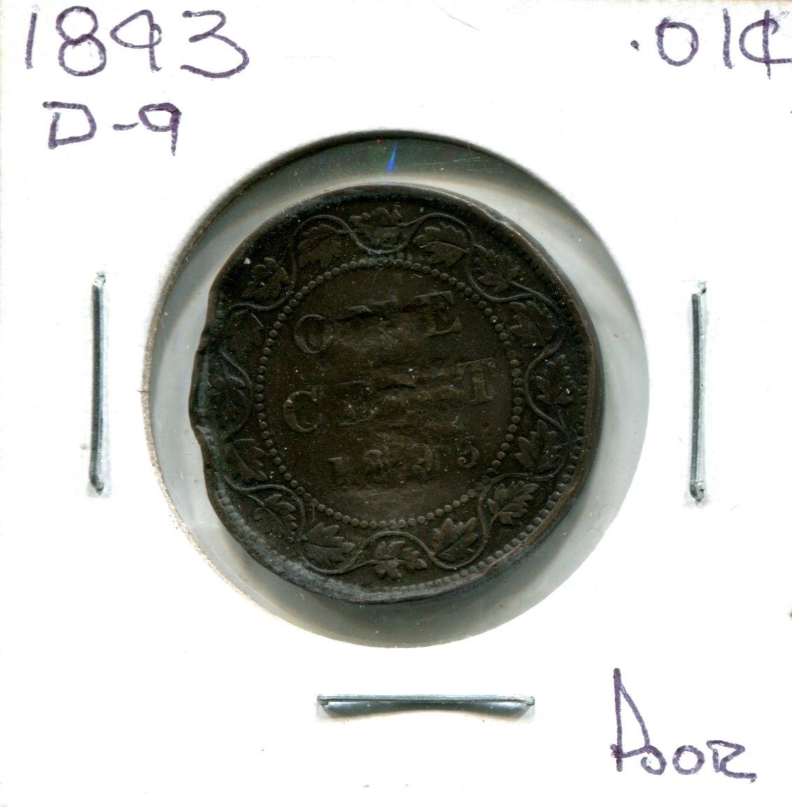 1893 (D-9) (Poor) Victoria Large One Cent Coin