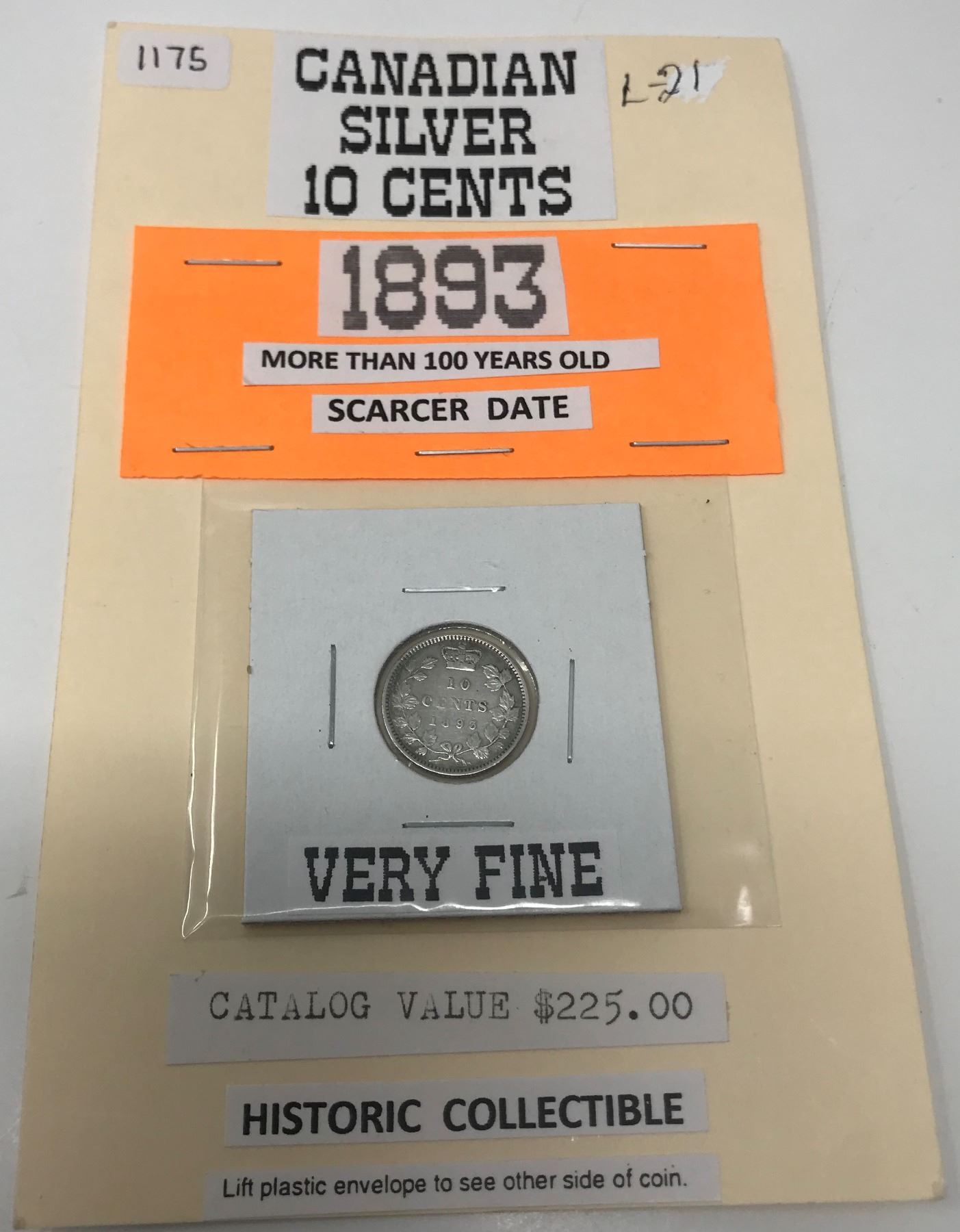 1893 Queen Victoria Silver Ten Cents-Very Fine