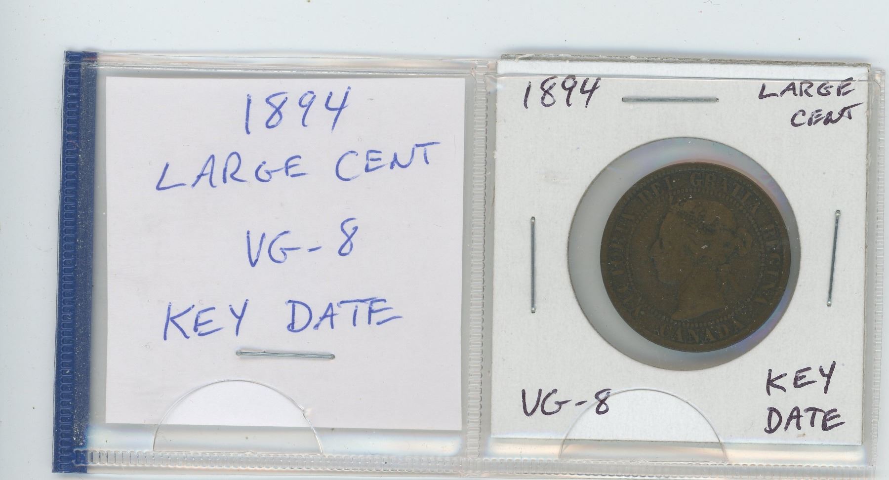 1894 Canadian Victorian Large Cent. VG-8. Key Date.