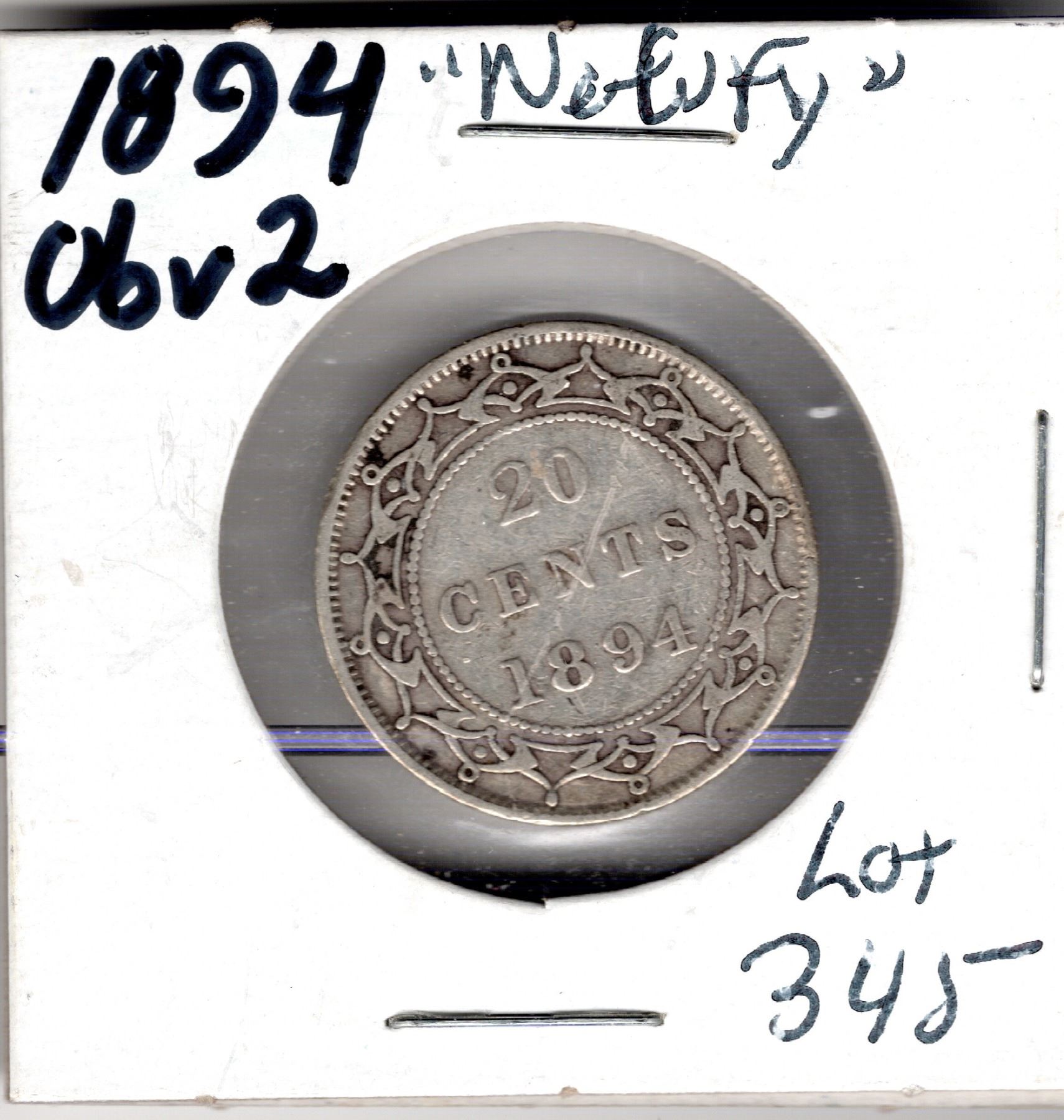 1894 OBVERSE 2 NEWFOUNDLAND 20 CENT PIECE