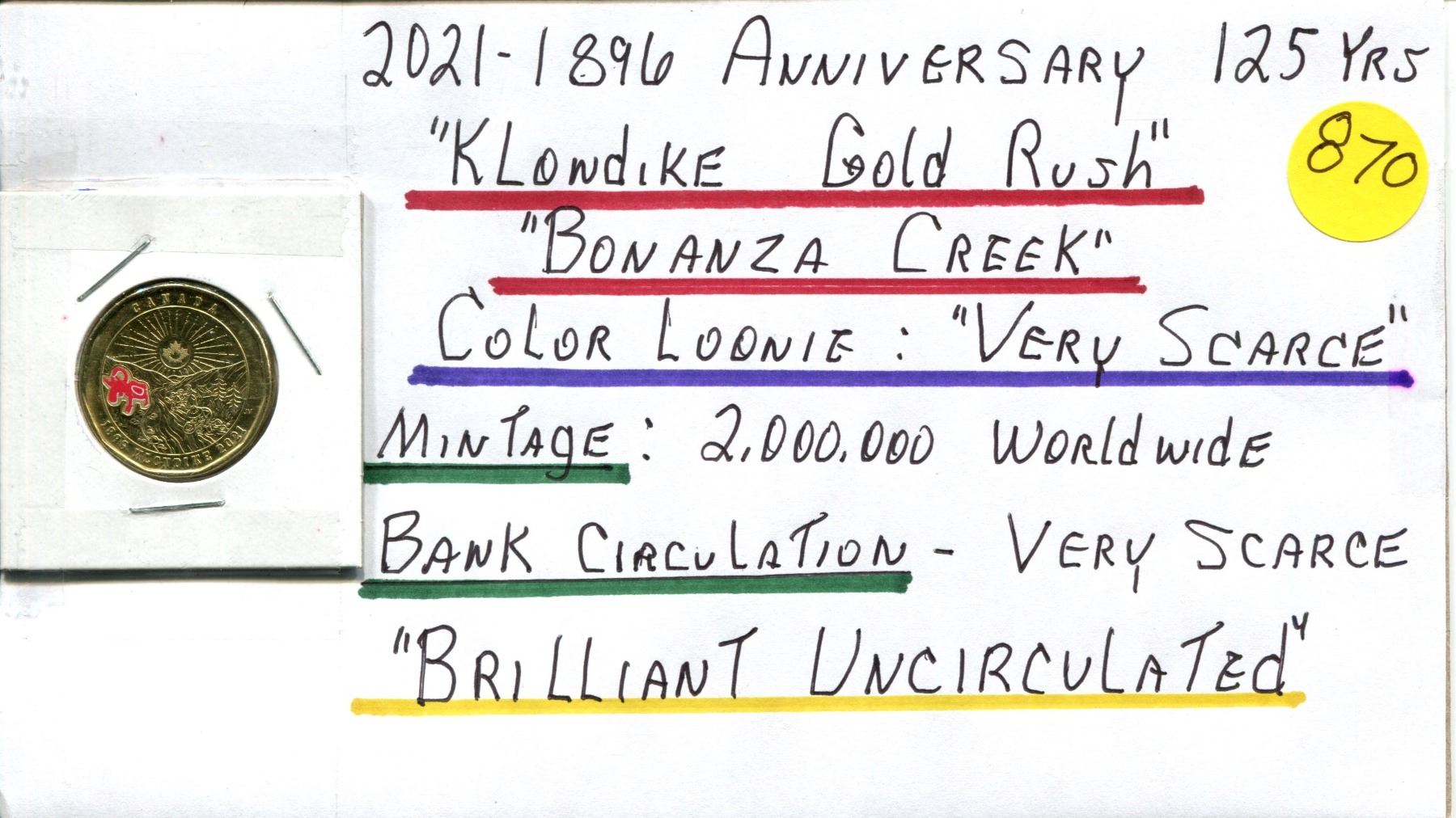1896-2021 Klondike Gold Rush "Bonanza Creek" Colour Loonie