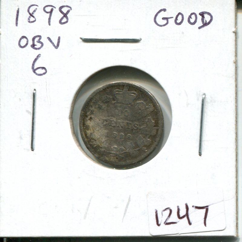 1898 Canadian Victorian Silver 10 Cents. Obverse 6. Good.