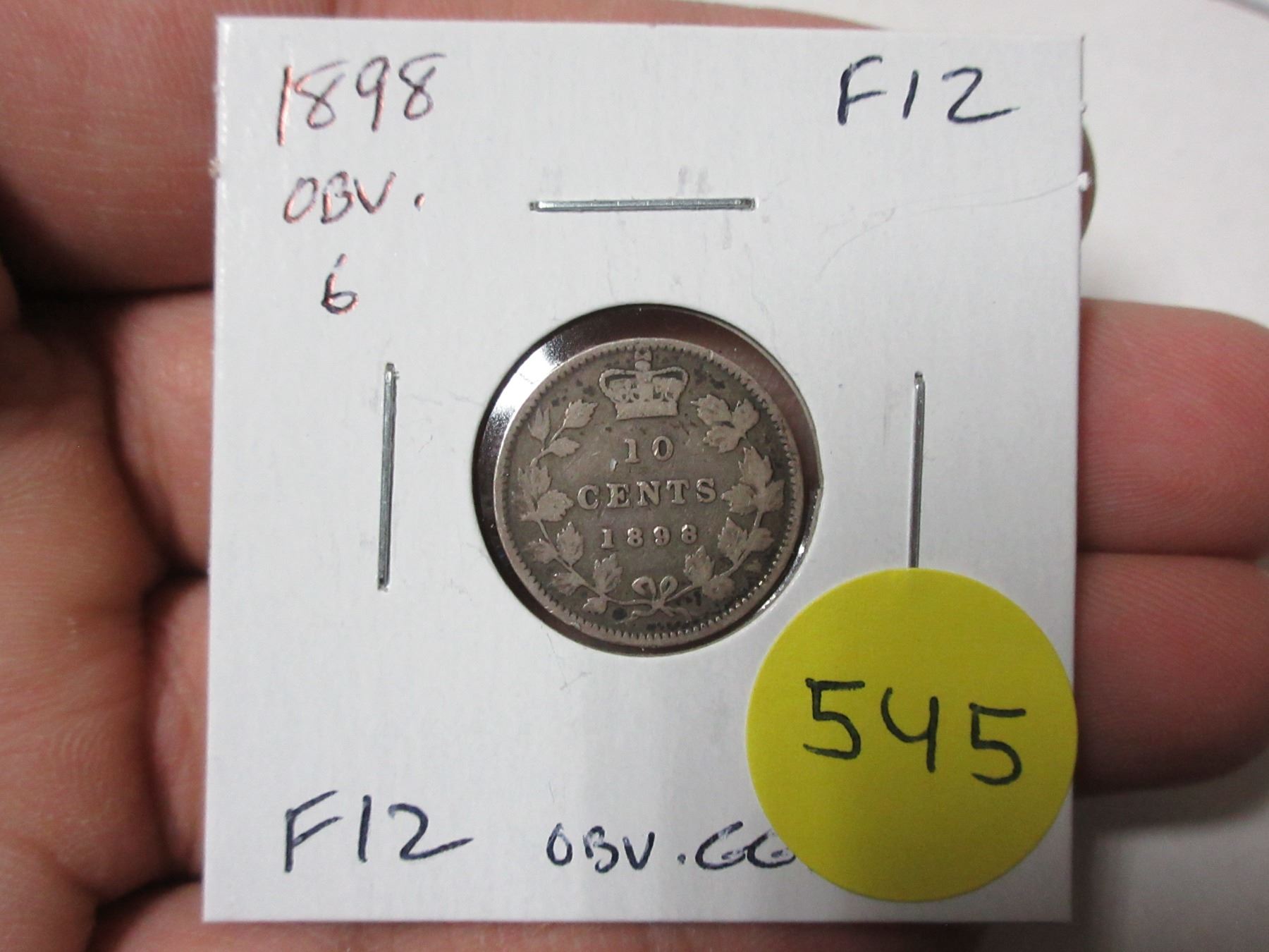 1898 Canadian Victorian Silver 10 Cents. Obverse 6 variety. F12. Obverse Gouge.
