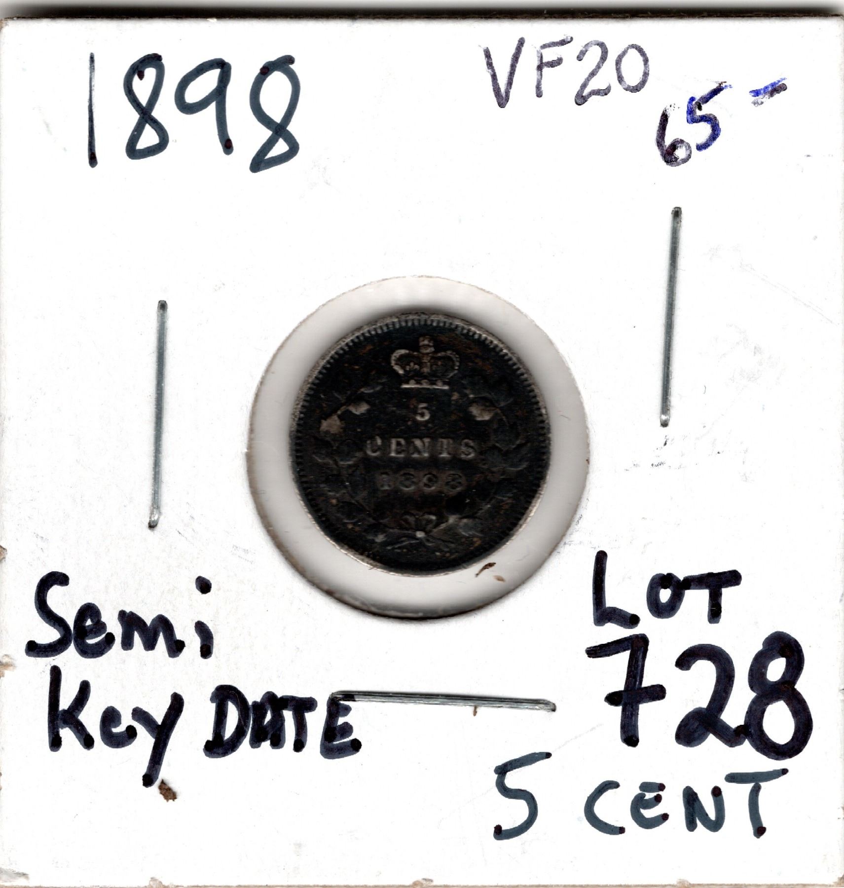 1898 SEMI-KEY DATE 5 CENT