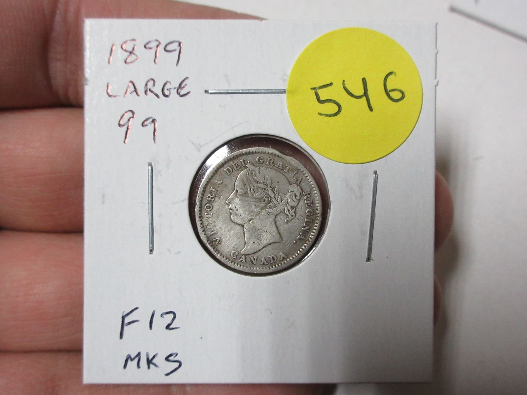 1899 Canadian Victorian Silver 10 Cents. Large 99 variety. F12. Marks.