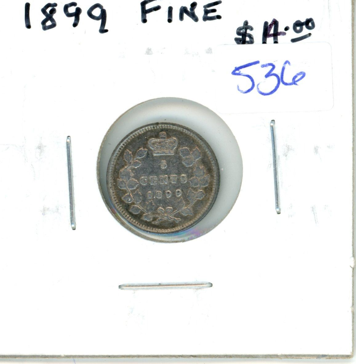 1899 Canadian Victorian Silver 5 Cents. F-12.