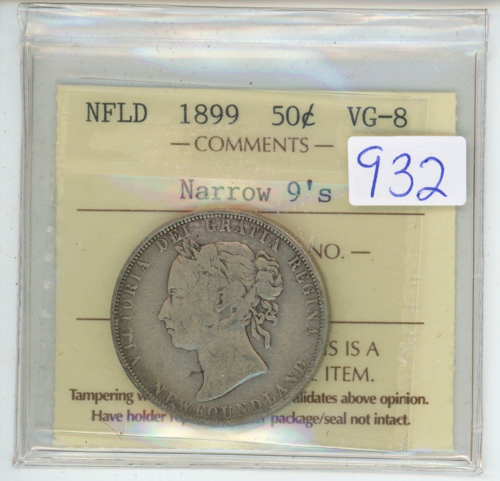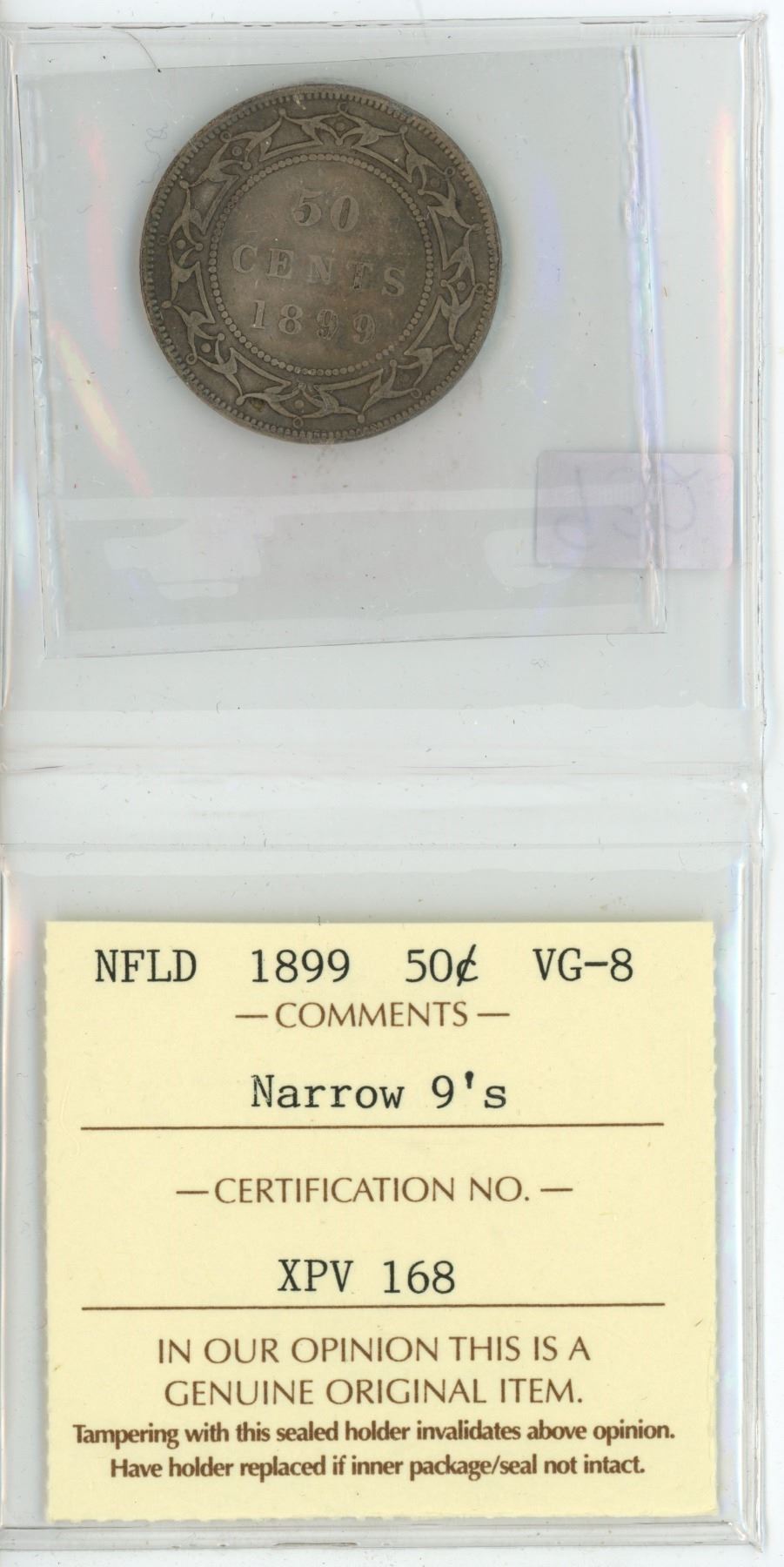1899. ICCS Graded, Newfoundland Canadian silver 50 cent coin - VG-8