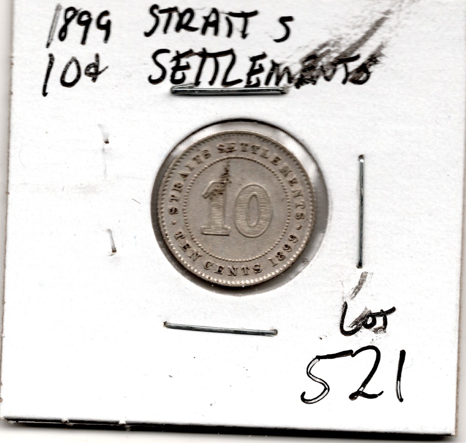 1899 TEN CENT STRAITS SETTLEMENTS VERY SCARCE SILVER