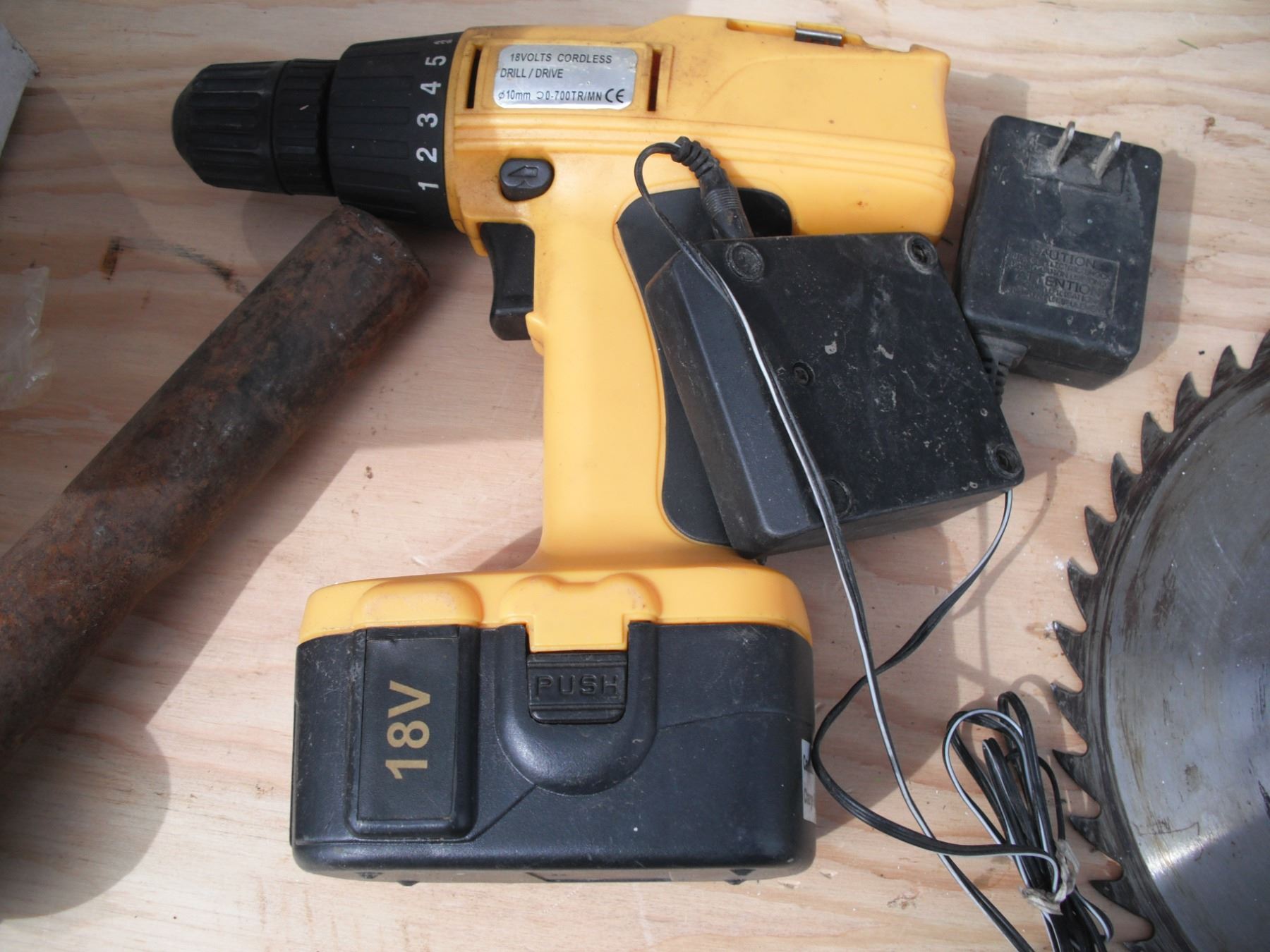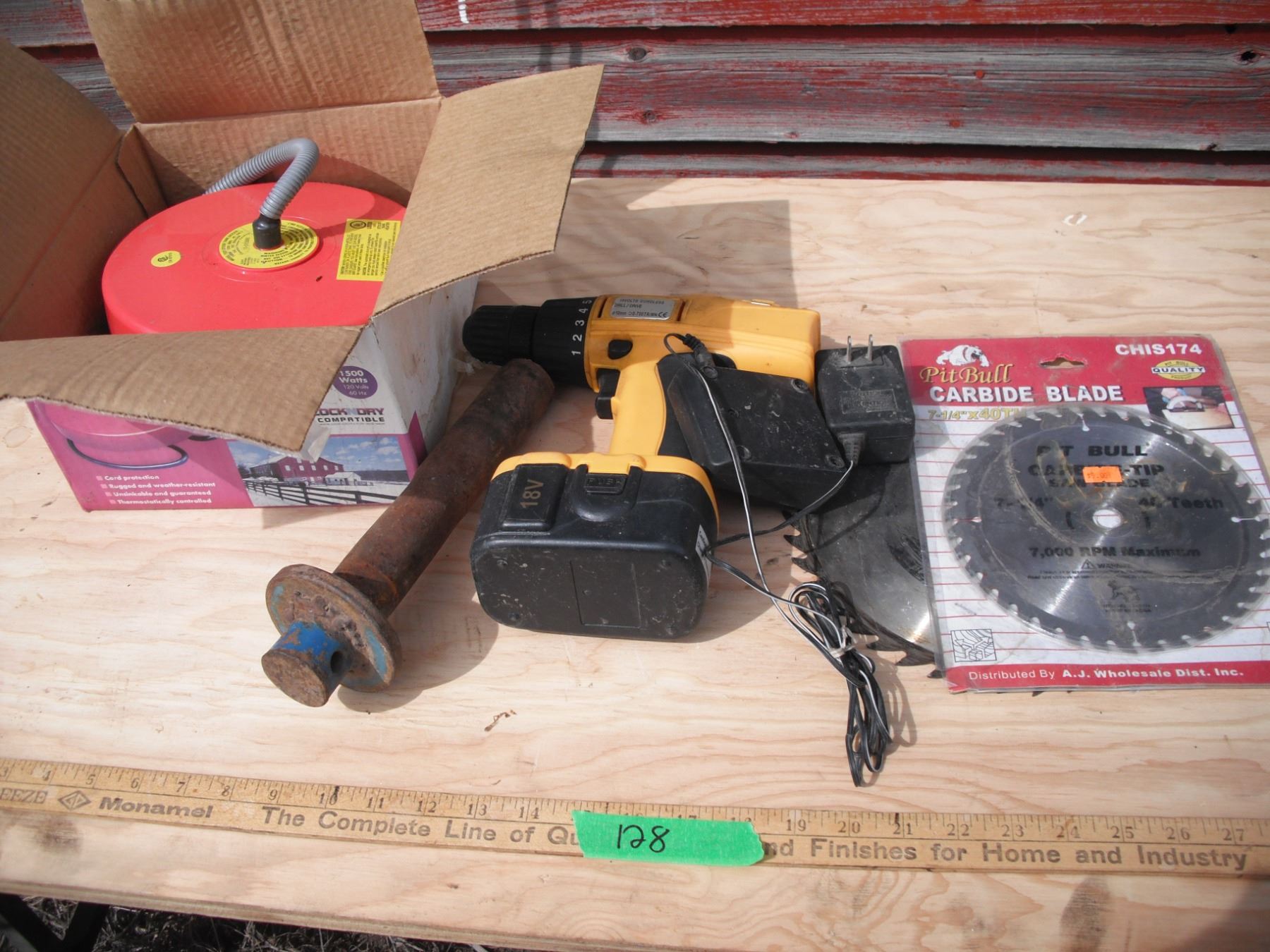 18V drill with charger, 2 carbide blades, large pin, and water tank heater