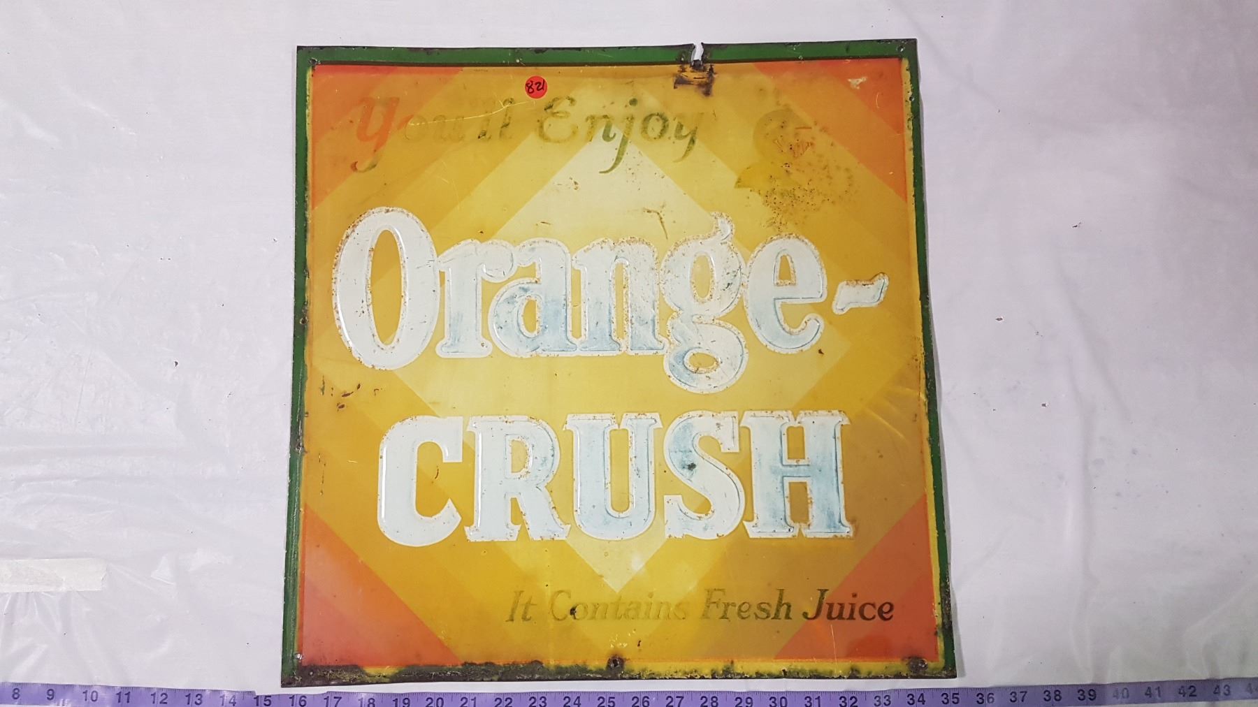 19.5 X 19.5" embossed Orange Crush tin sign