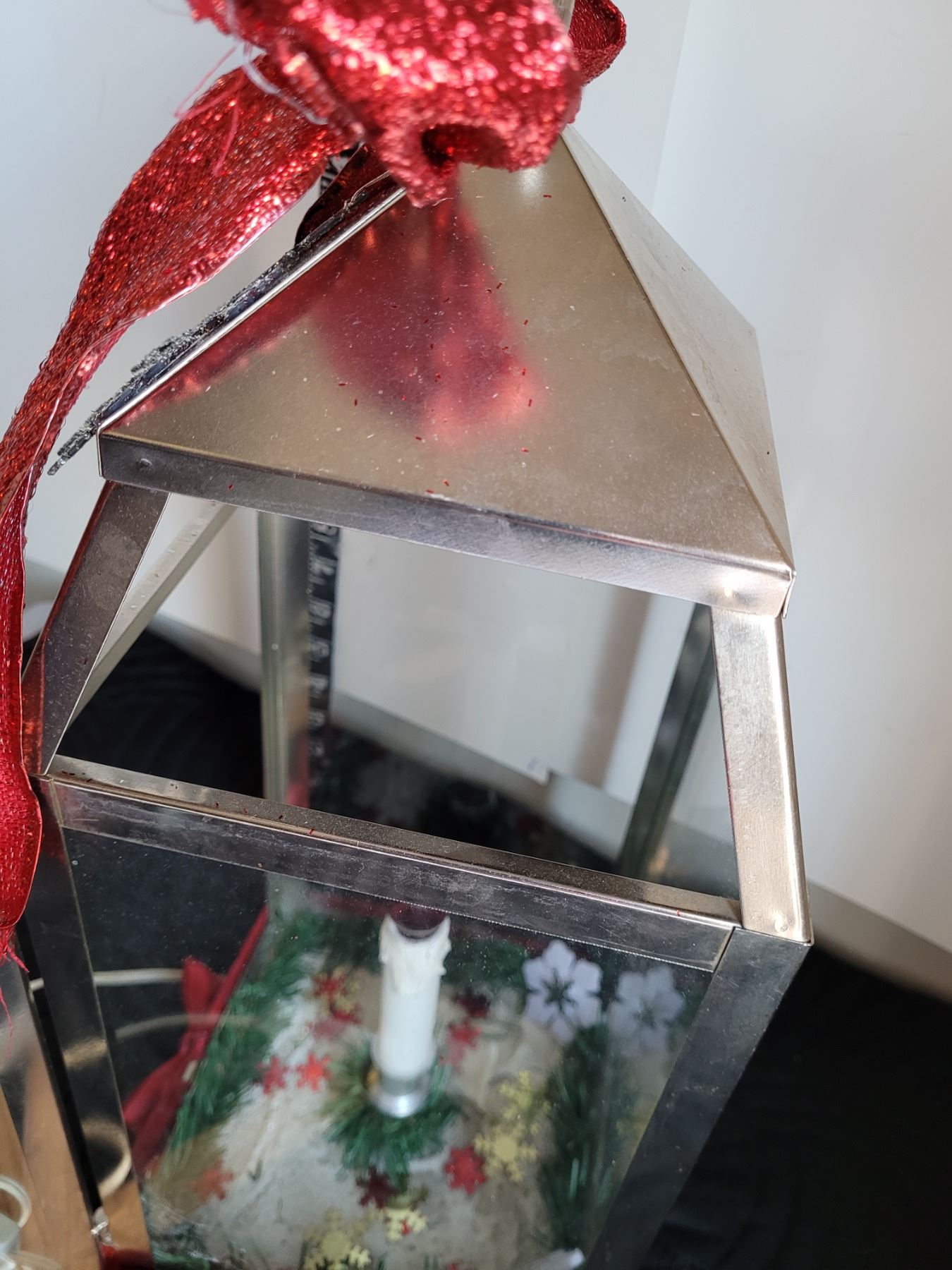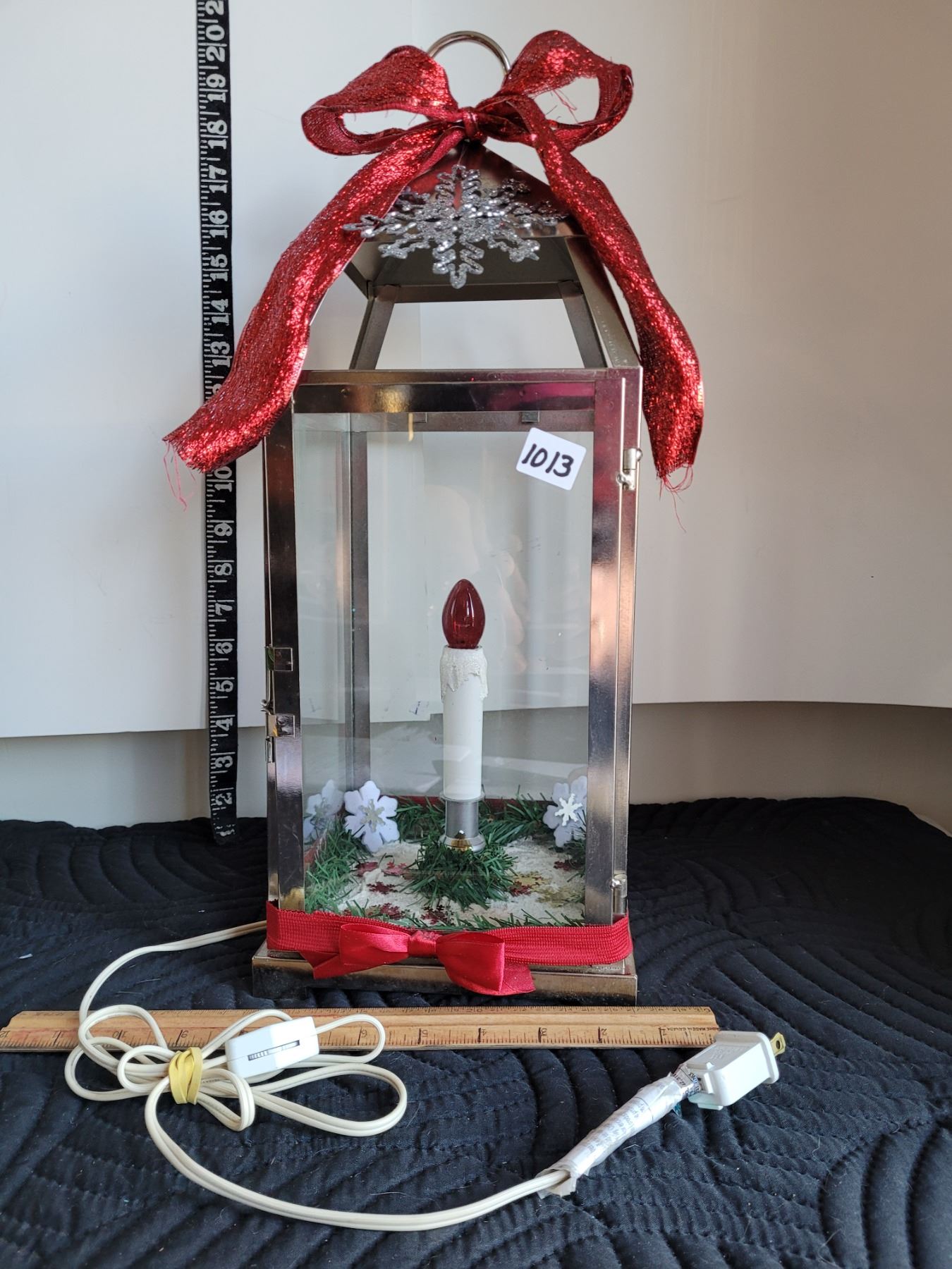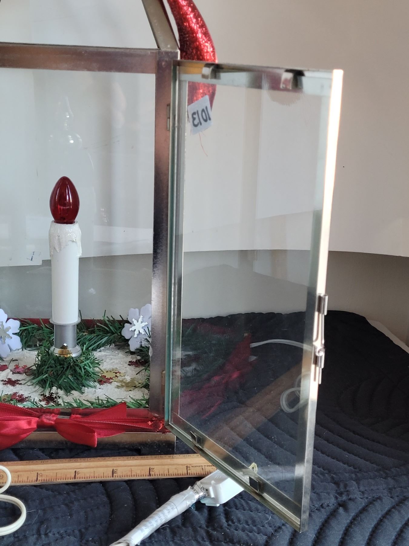19 inch Metal & glass Christmas Lantern. Front opening.