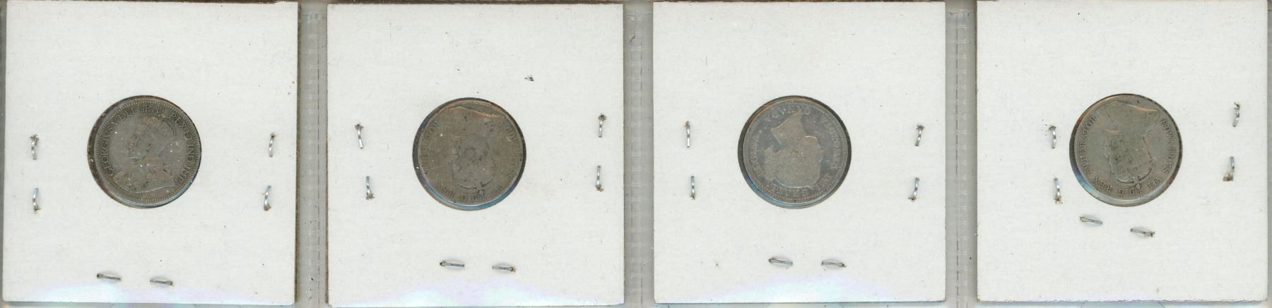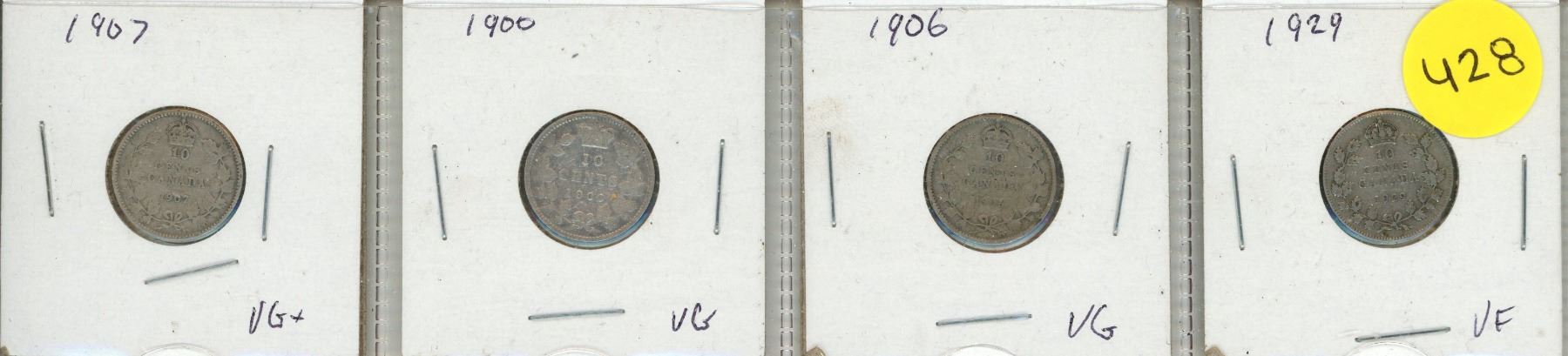 1900, 1906, 1907, 1929 Canada Silver 10 Cents.