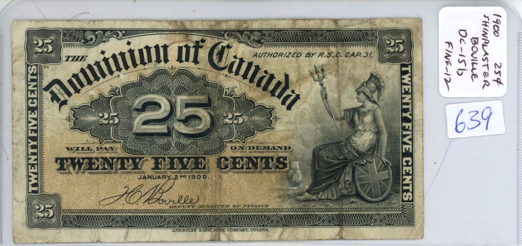 1900 25 Cents Shinplaster. Boville signature. DC-15b. Fine-12.