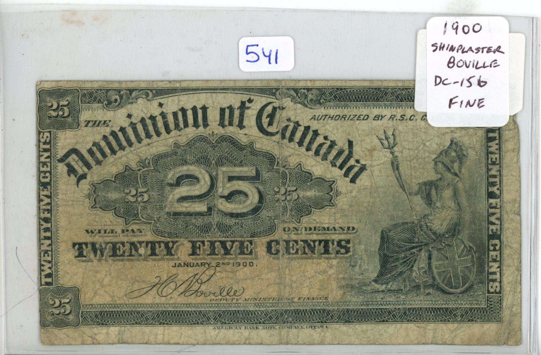1900 25 Cents Shinplaster. Boville signature. DC-15b. Fine-12.