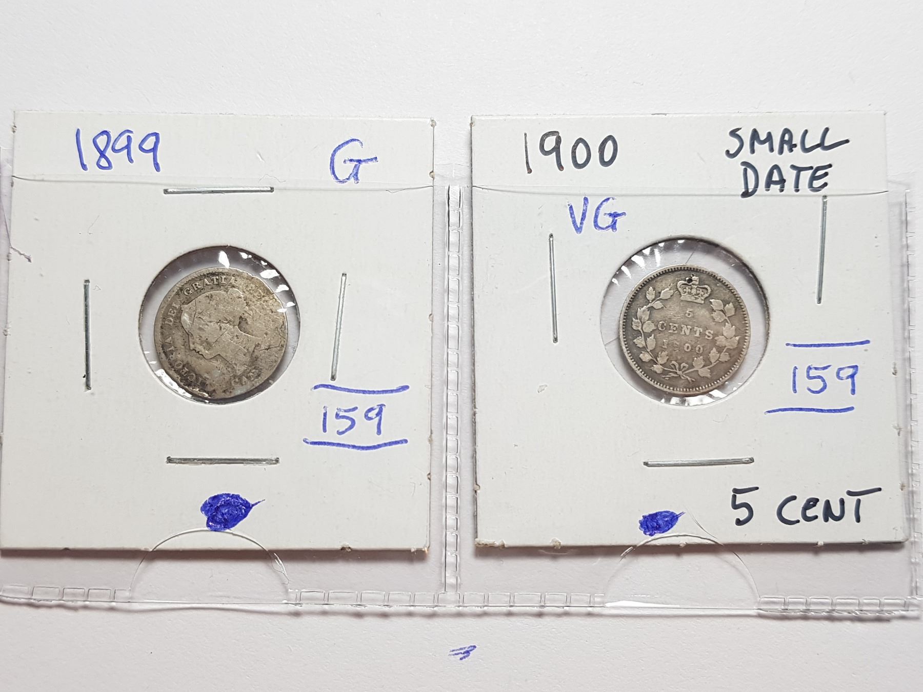 1900 AND 1899 CANADA 5 CENT SILVER COINS