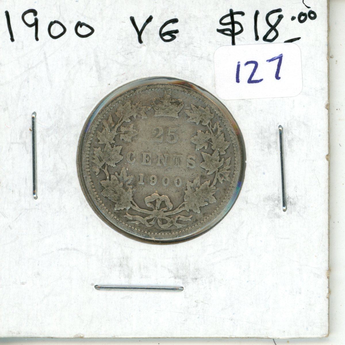1900 Canadian Victorian Silver 25 Cents. VG-8.