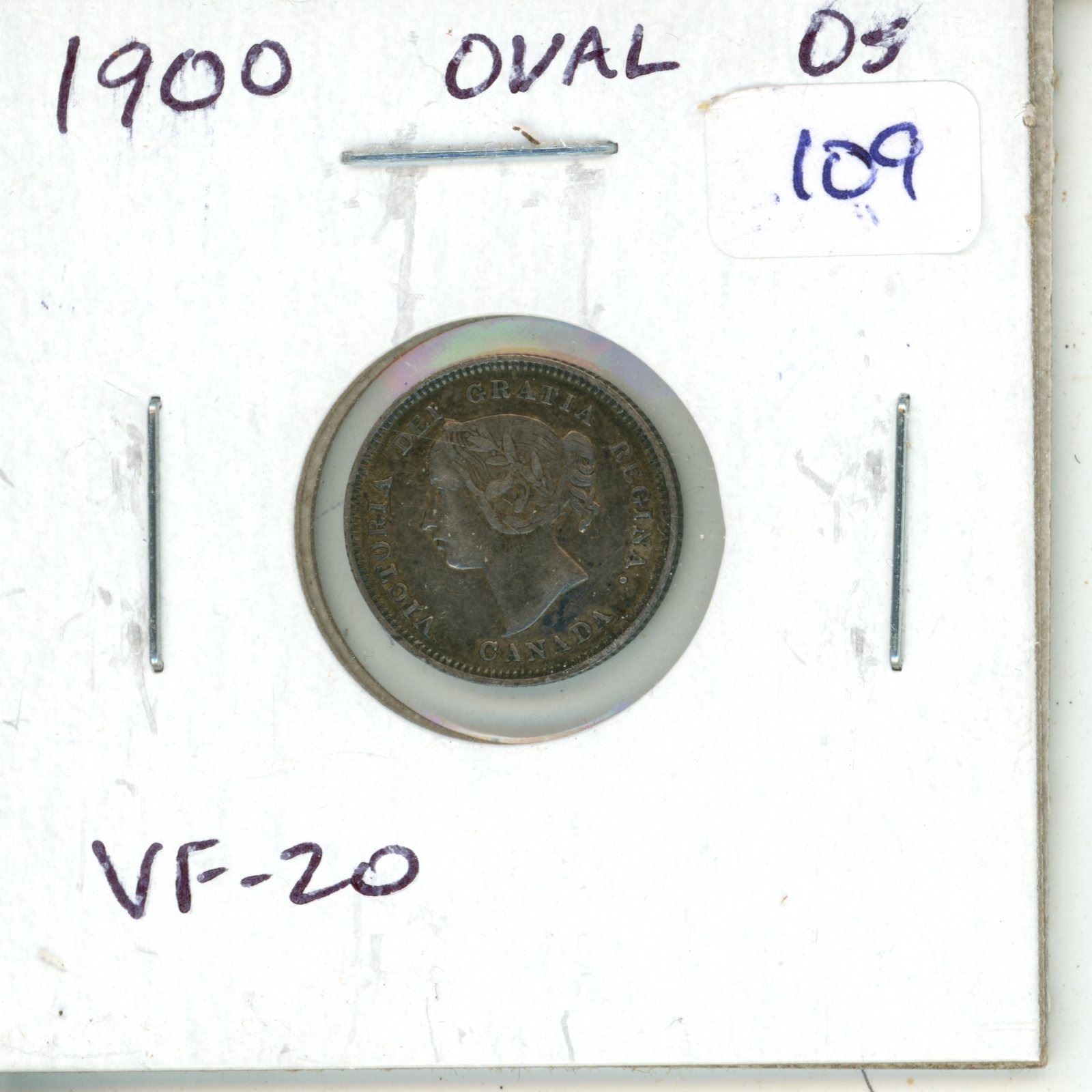 1900 Canadian Victorian Silver 5 Cents. Oval Zeros Variety. VF-20.