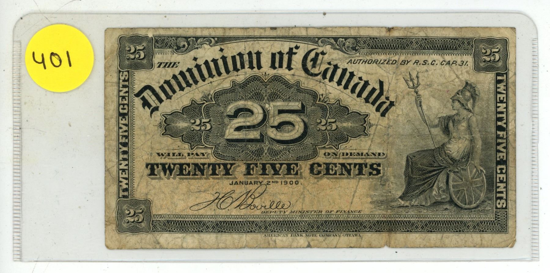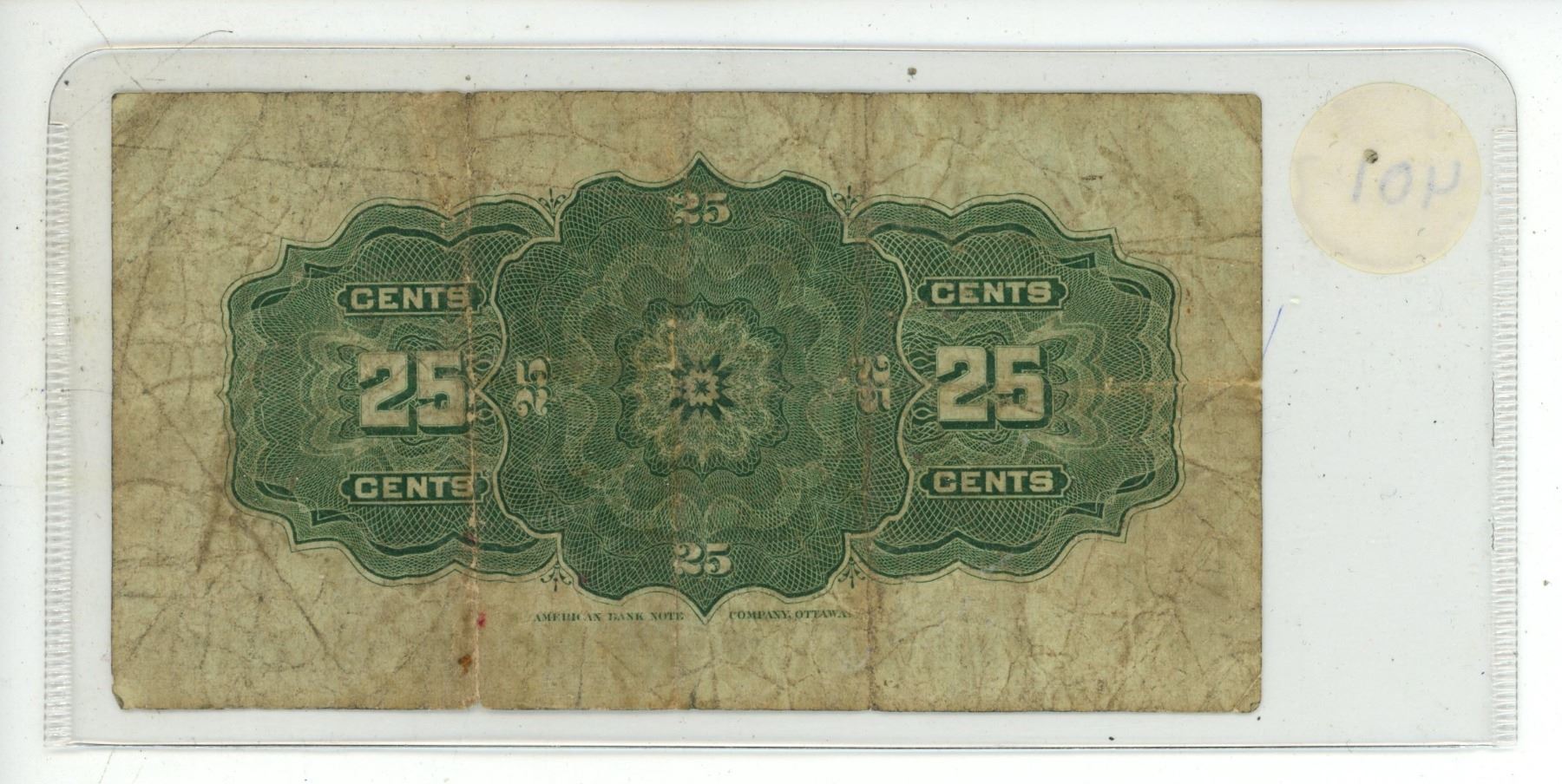 1900 Dominion of Canada 25 Cents Shinplaster.