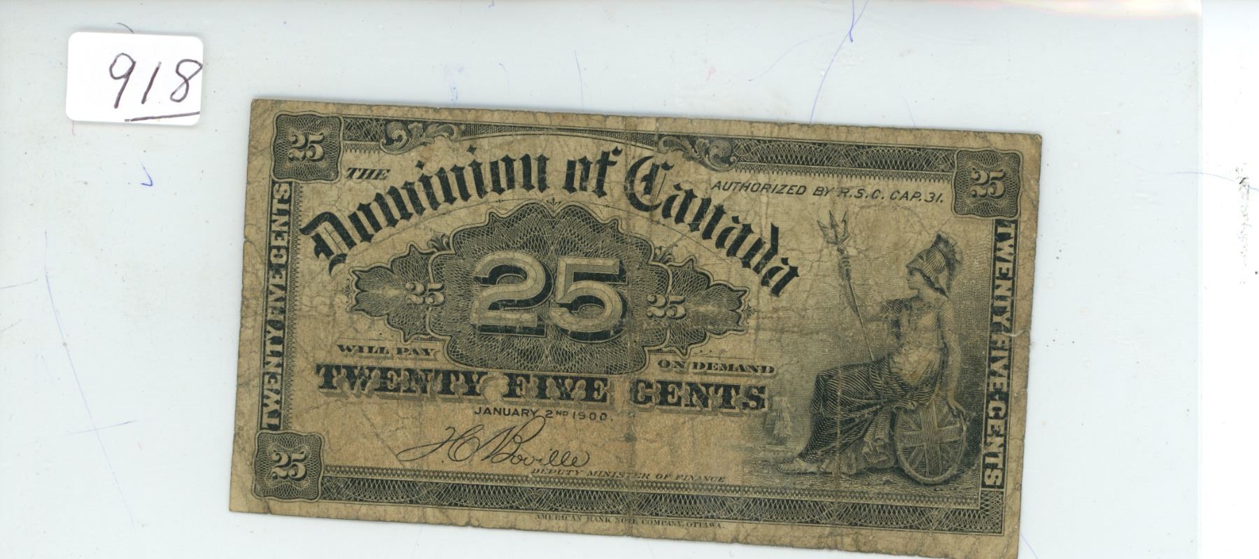 1900 Dominion of Canada 25 cent shinplaster - Boville