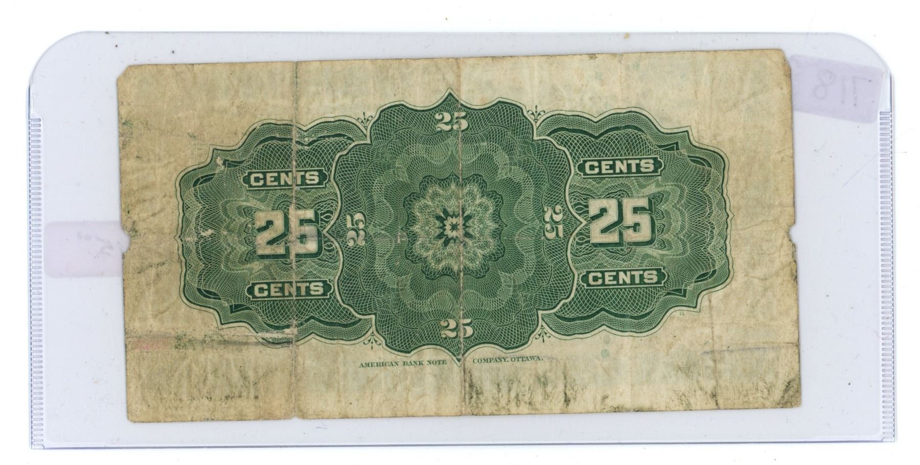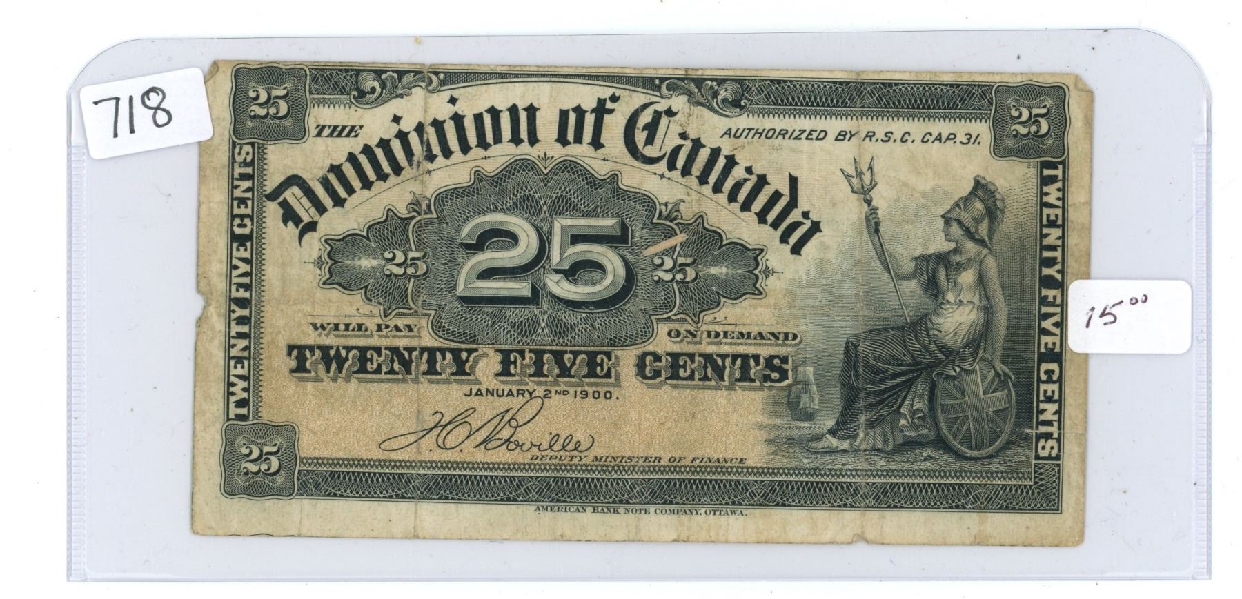 1900 Dominion of canada 25 cent shinplaster, Boville