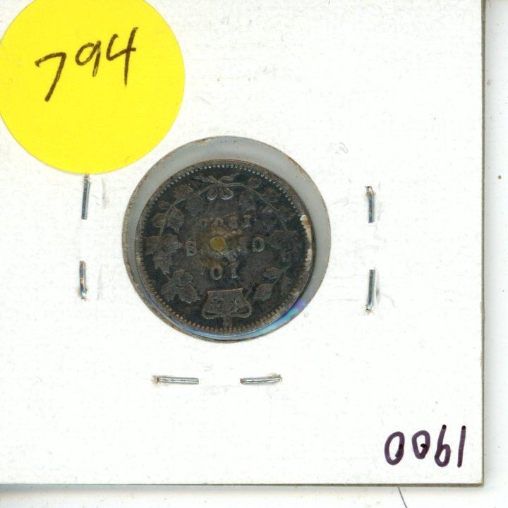 1900 Victorian Silver 10 Cents. Formerly made into a pin. F-12.