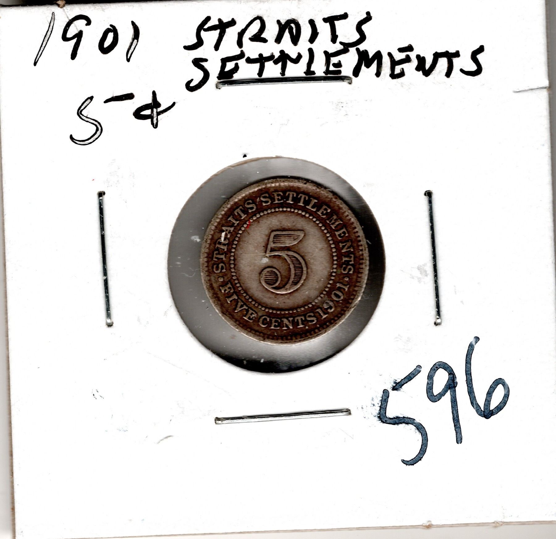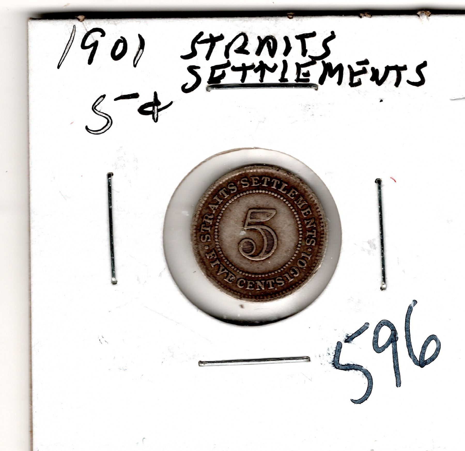 1901 FIVE CENT STRAITS SETTLEMENTS SILVER