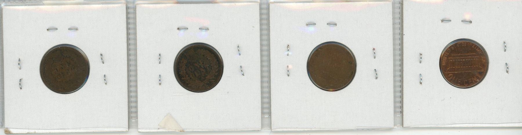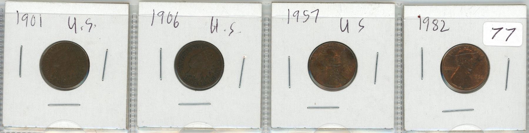 1901 Indian Head, 1906 Indian Head, 1957, 1982 United States of America Pennies