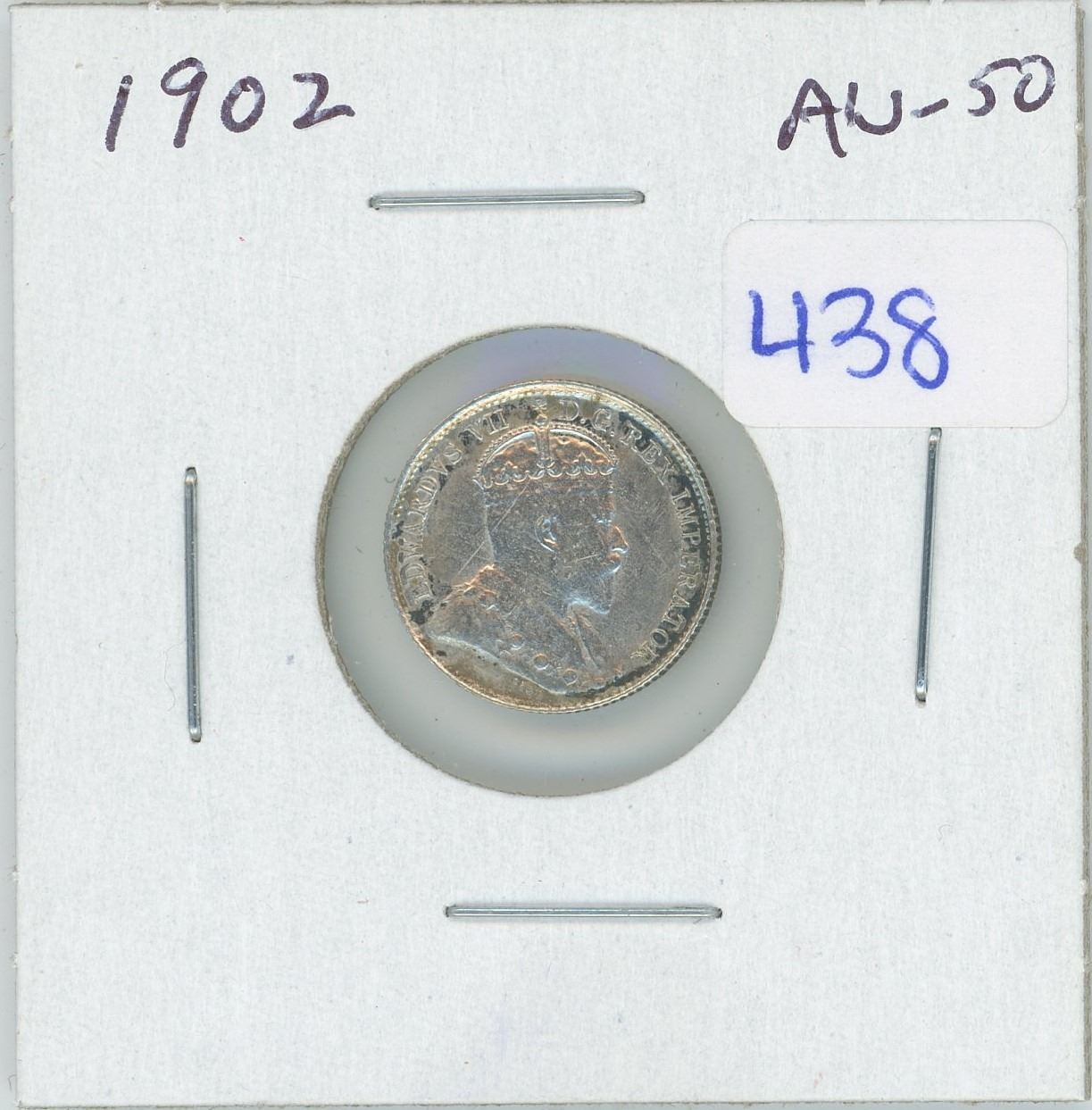 1902 SILVER 5 CENTS (AU-50 LUSTROUS)