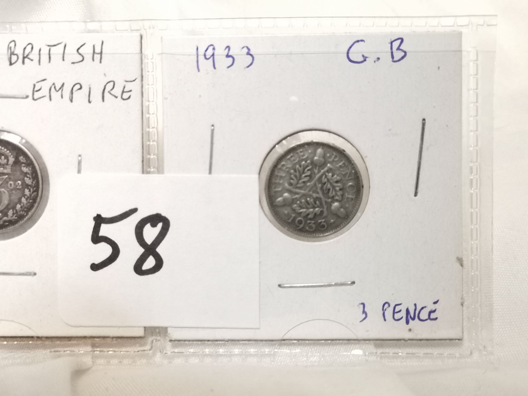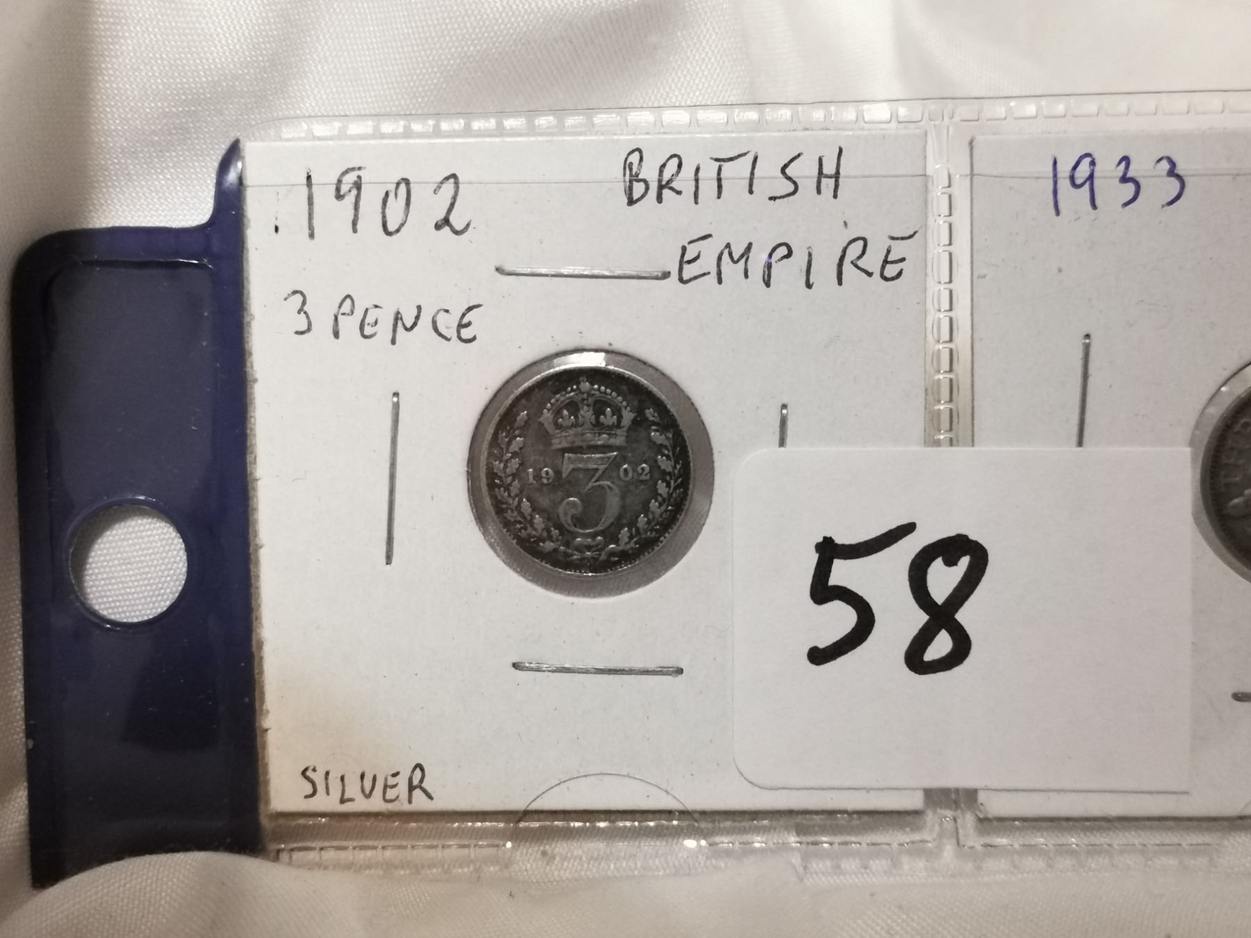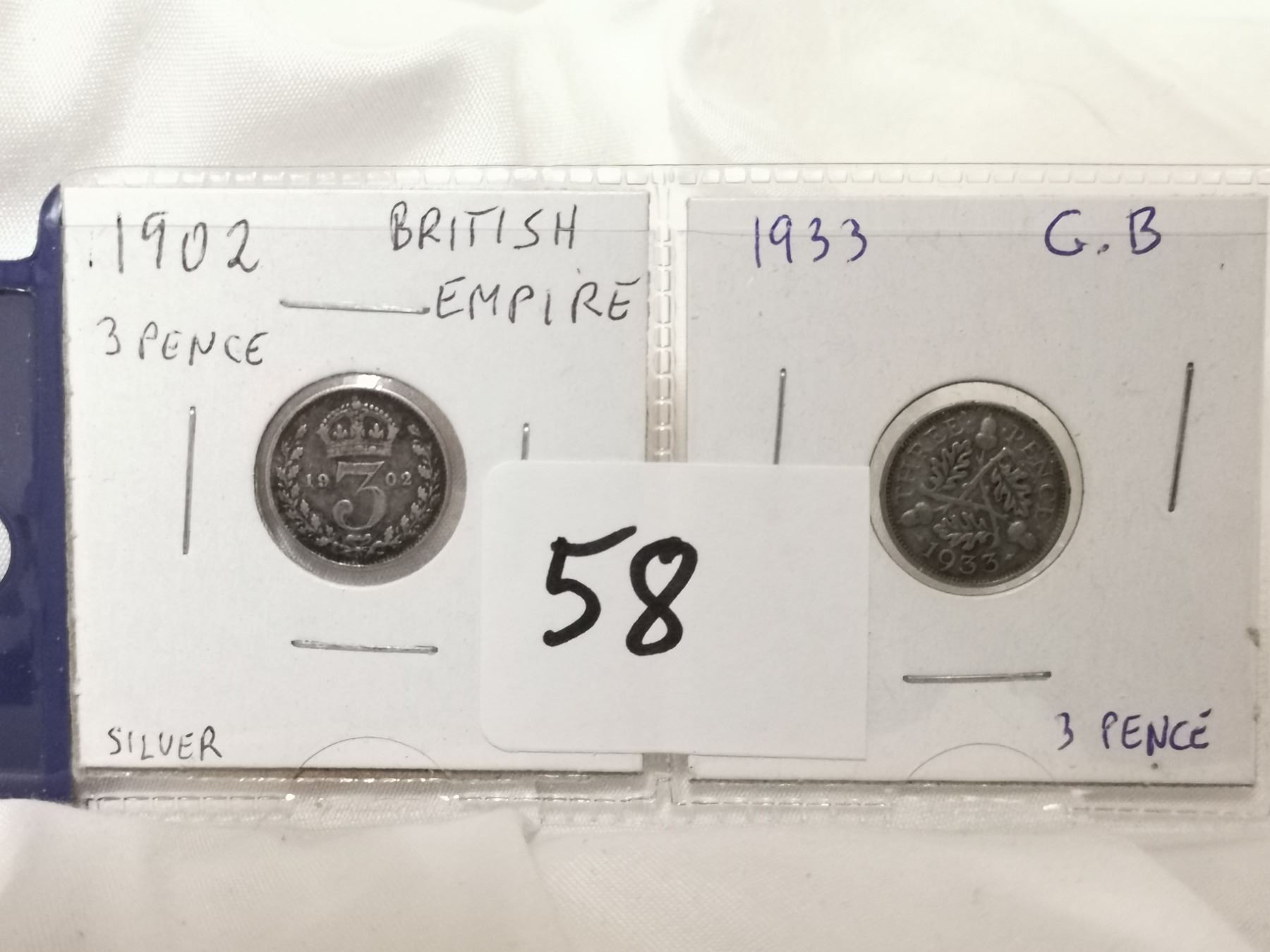 1902 and 1933 G.B silver 3 pence coins