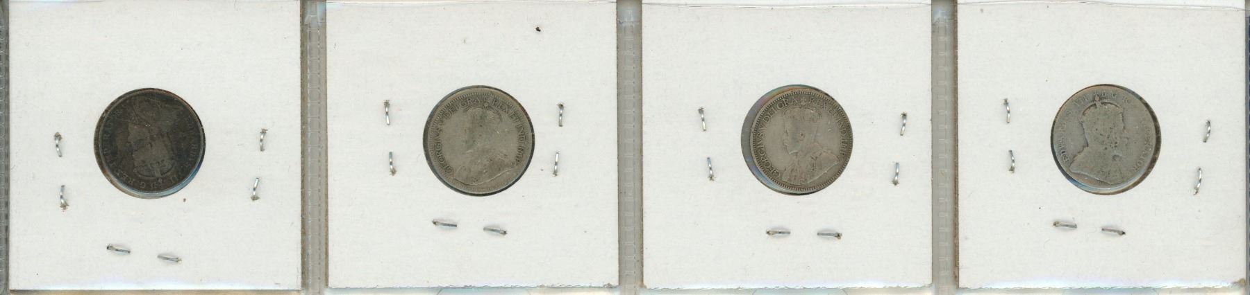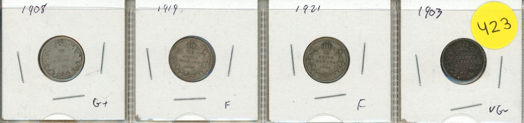 1903, 1908, 1919, 1921 Canada Silver 10 Cents.