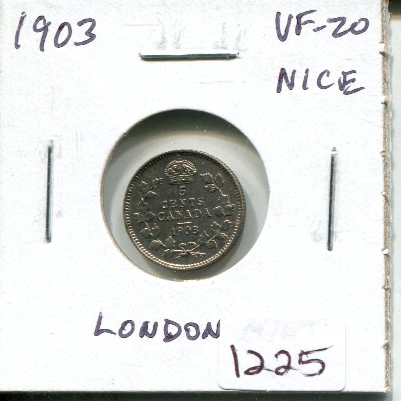 1903 Canadian Silver 5 Cents. VF-20. Nice.