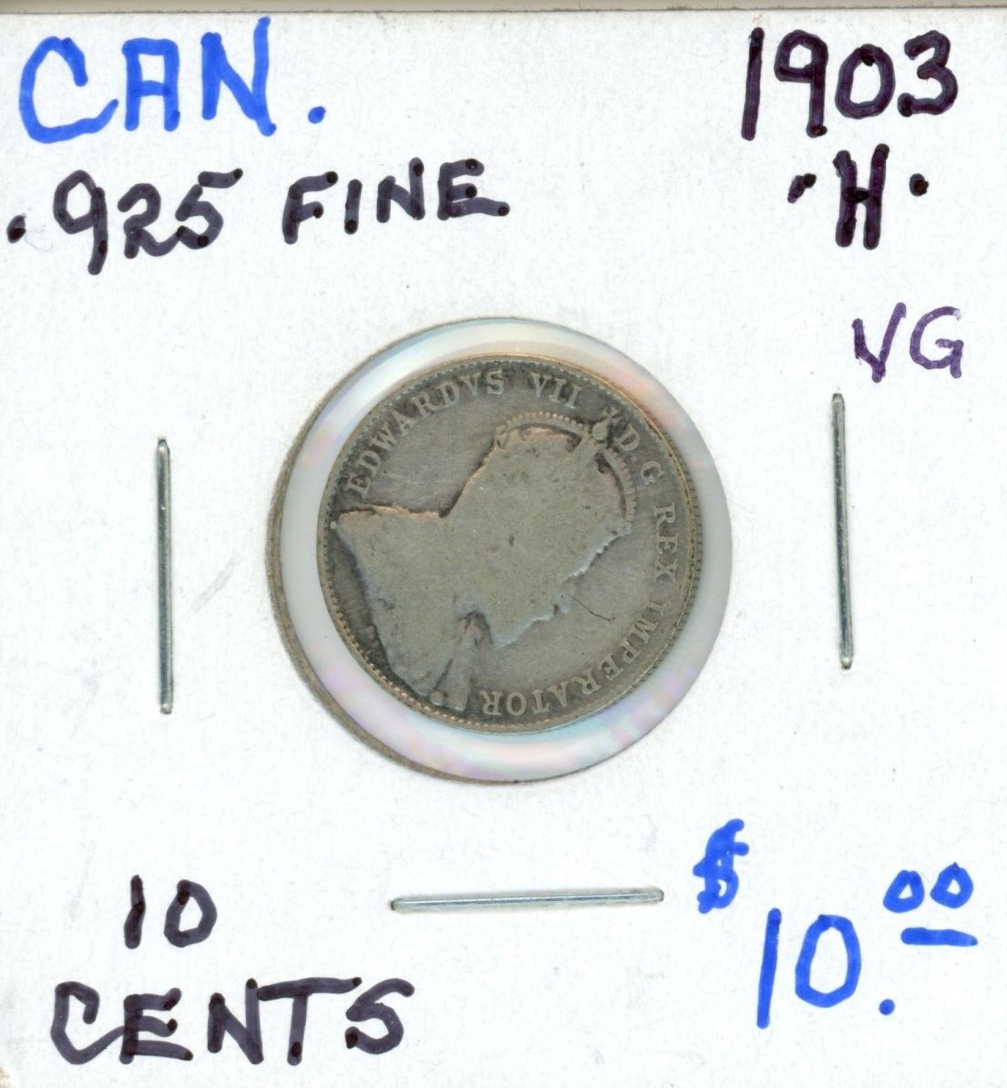 1903-H Canadian Silver 10 Cent Coin (VG)