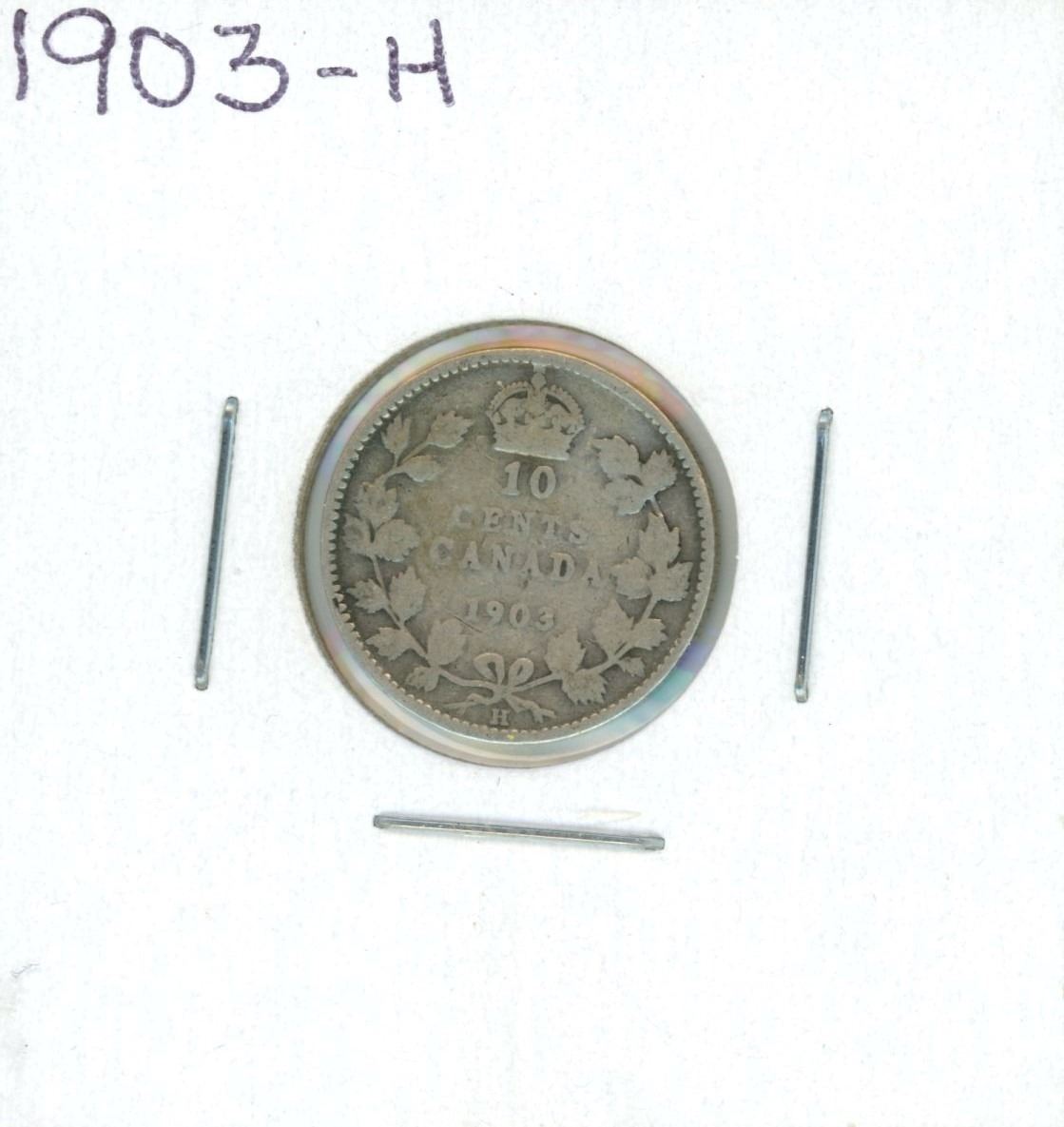 1903-H Canadian Silver 10 Cent Coin