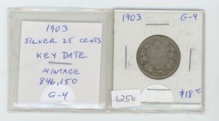 1903 Silver 25 Cents. Key Date. Mintage of 846,150. G-4.
