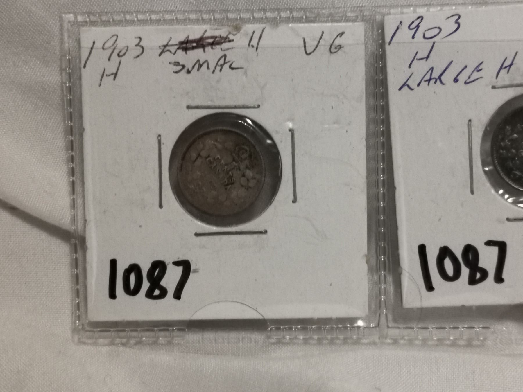 1903H large and small H 5 cent coins