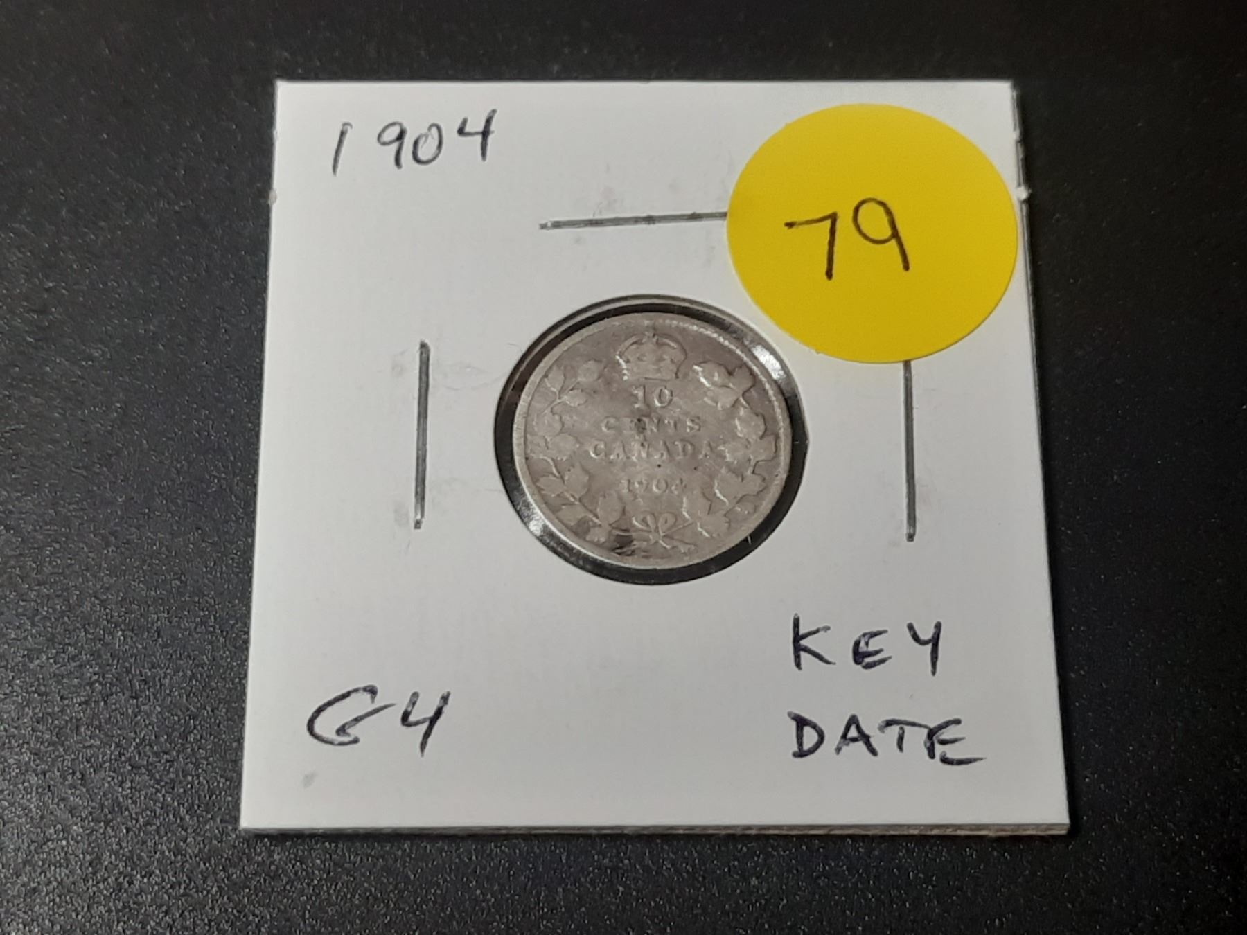 1904 Canadian Silver 10 Cents. Key Date. G4.