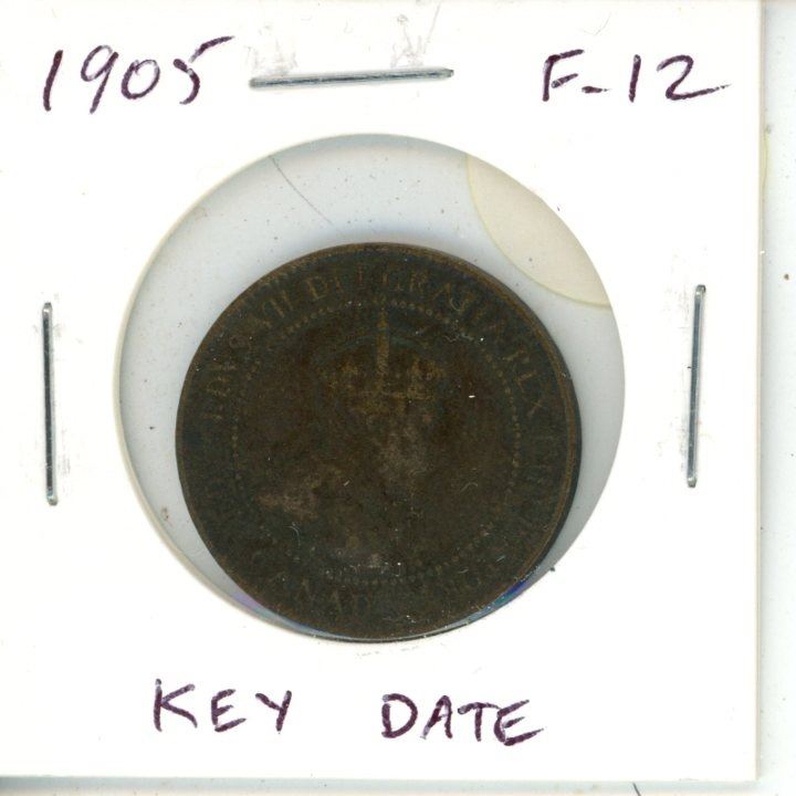 1905 Canadian Large Cent. Scarce Date. F-12.