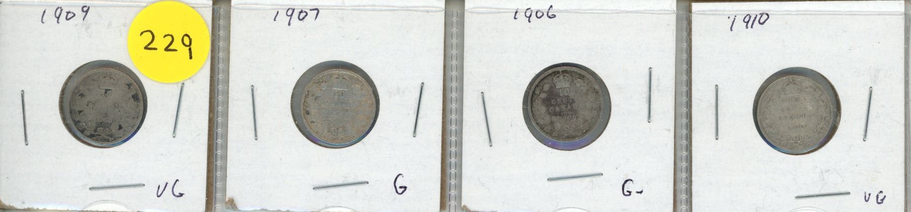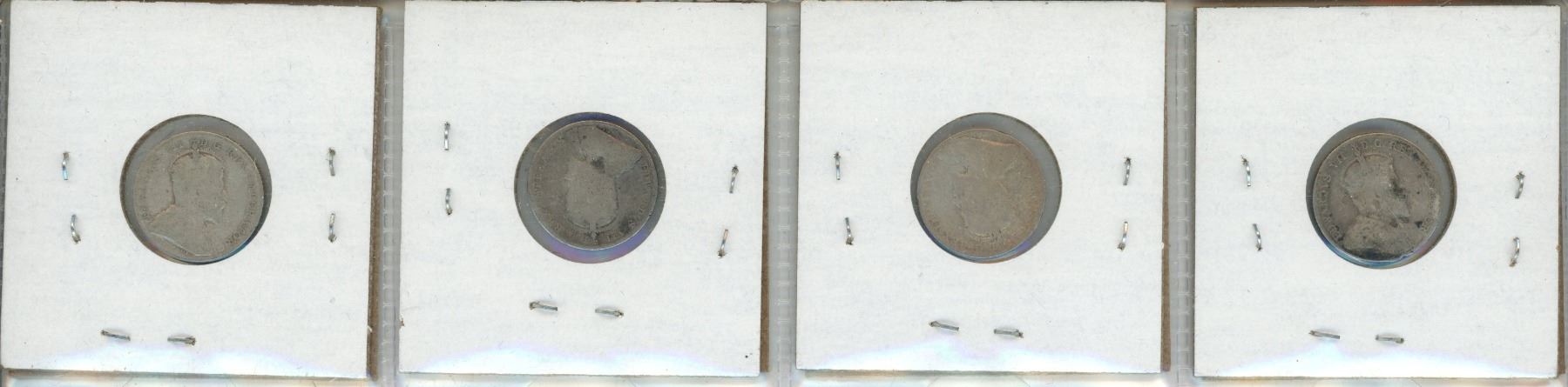1906, 1907, 1909, 1910 Canada Silver 10 Cents Coin.