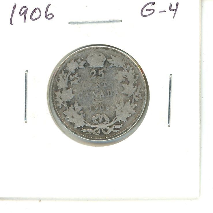 1906 Canadian Silver 25 Cents. Edward VII. G-4.