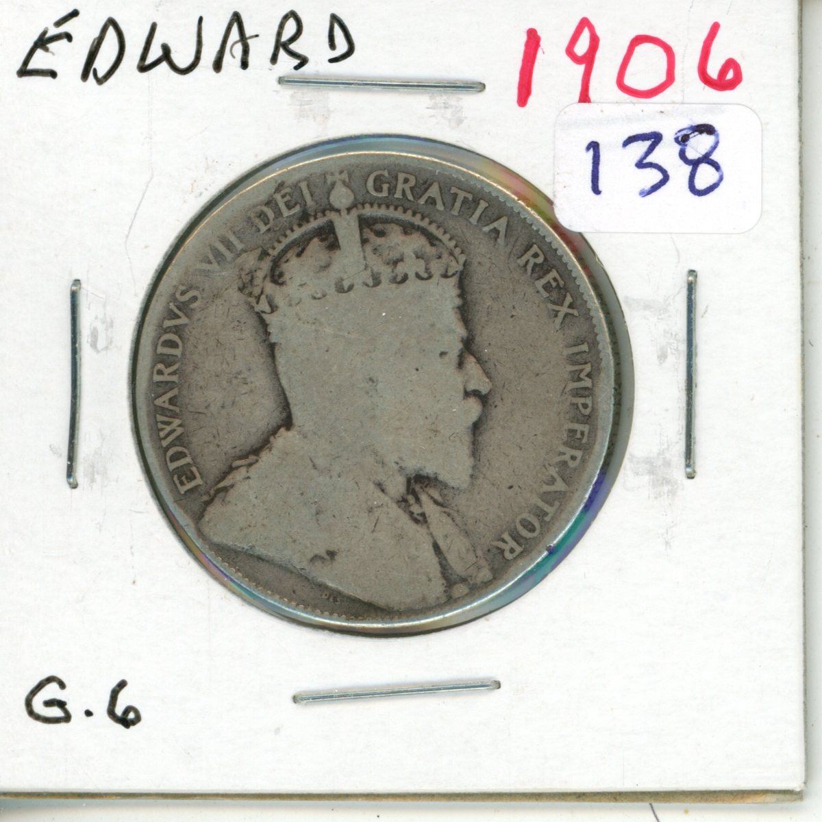 1906 Canadian Silver 50 Cents. King Edward VII. Key Date. G-6.
