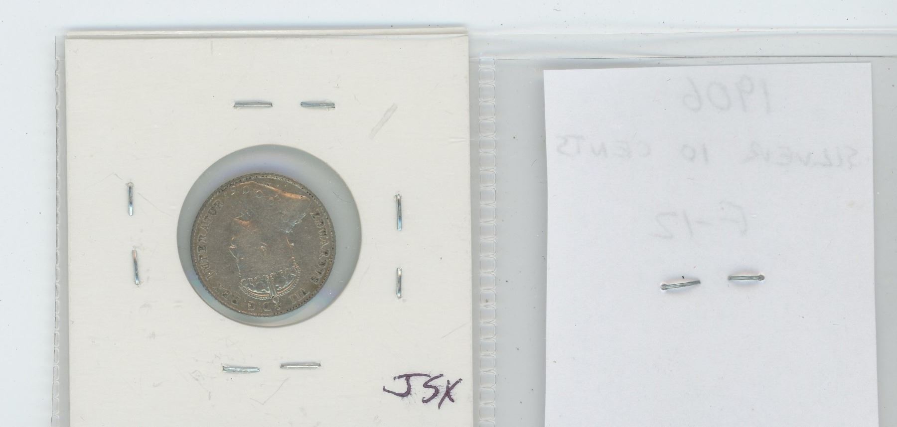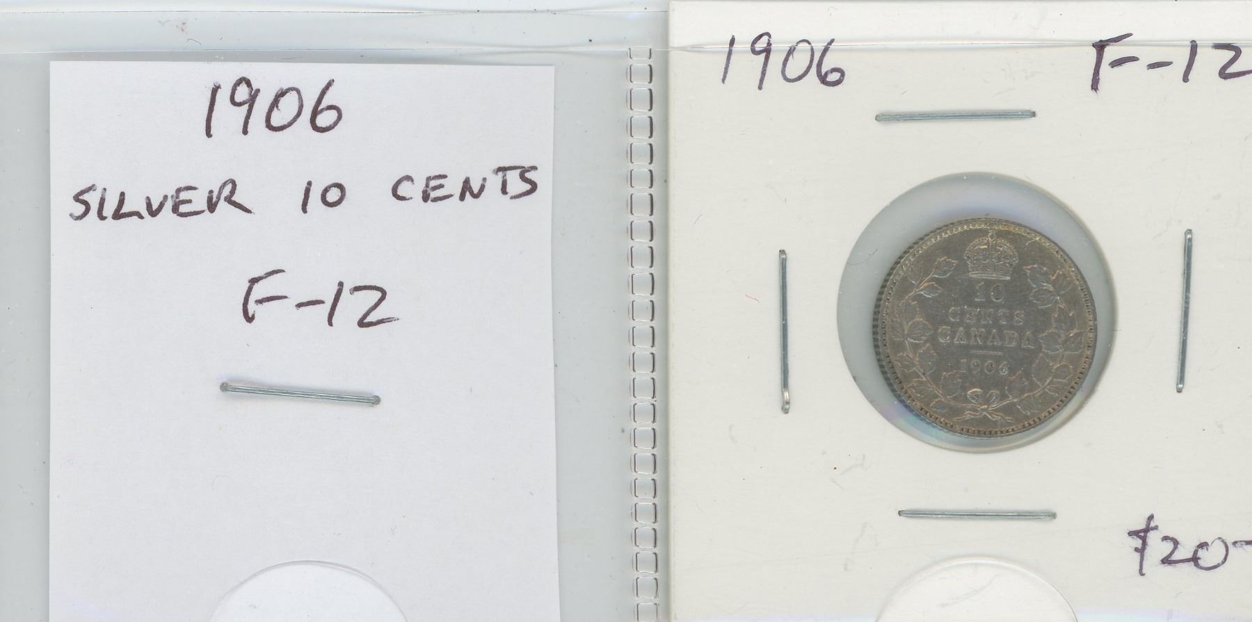 1906 EDWARDIAN SILVER 10 CENTS. F-12. NICE FOR THE GRADE.
