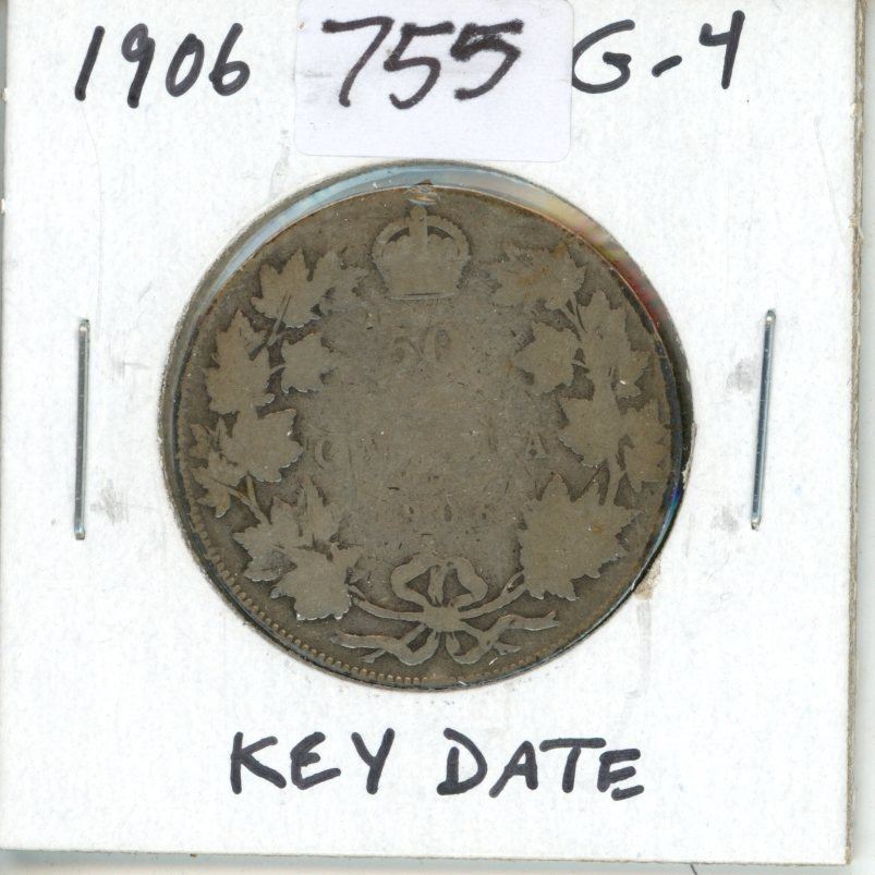 1906 Silver 50 Cents. Key Date. Mintage of 350,000. G-4.