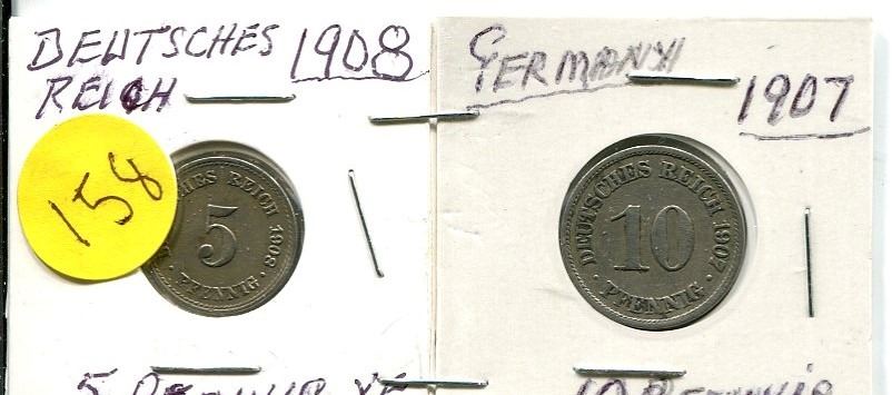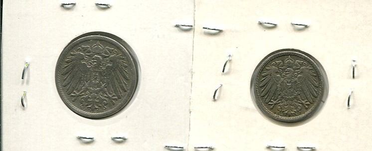1907 and 1908 Deutsches Reich 5 and 10 Pfanning