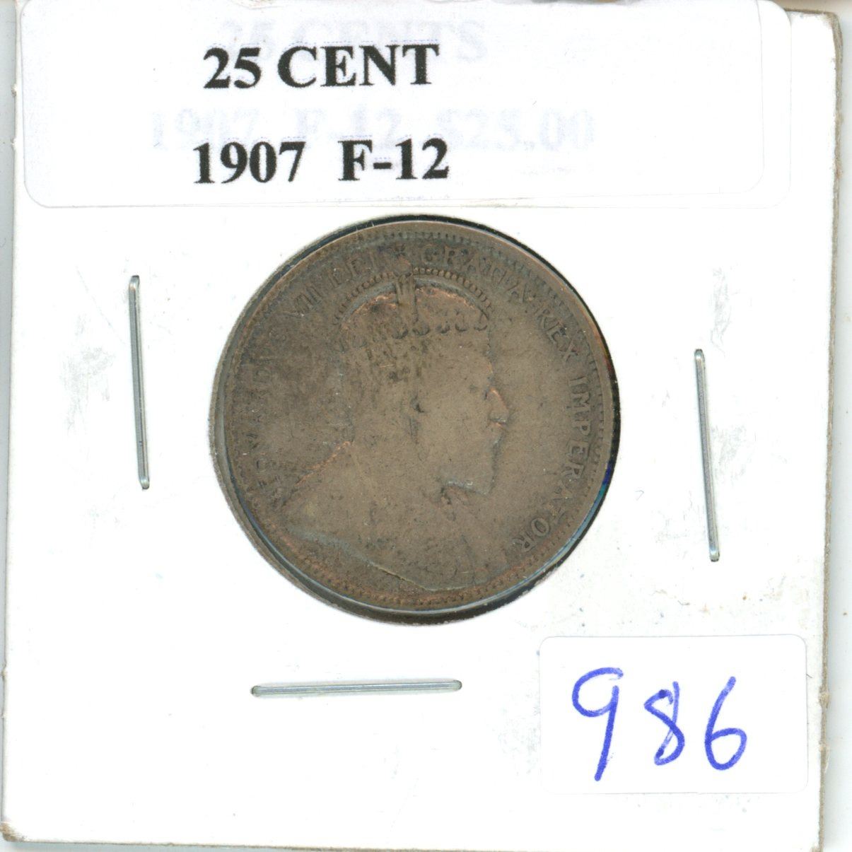1907 Canadian 25 cent silver coin
